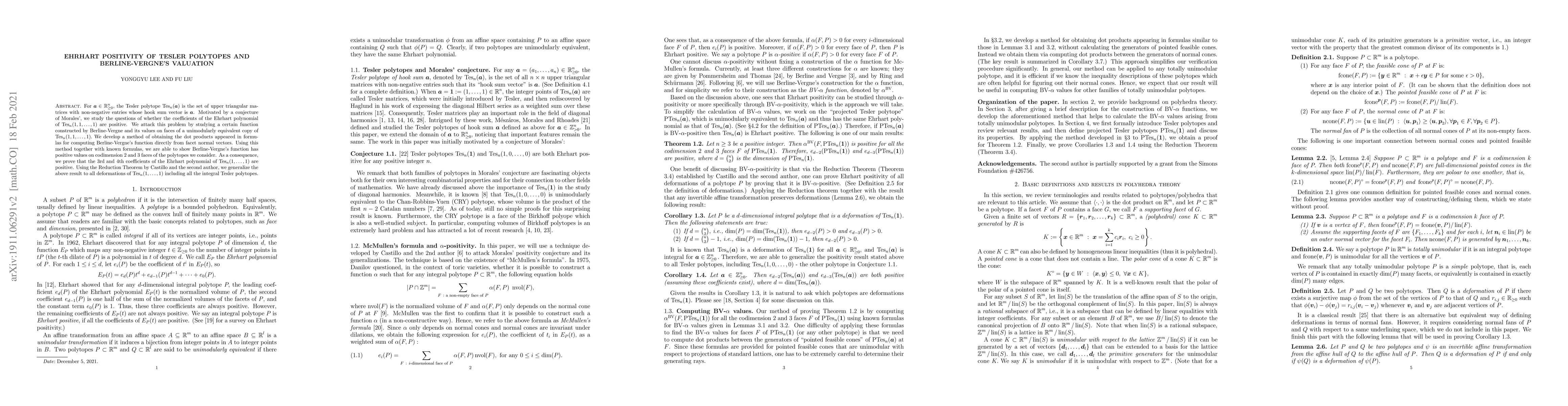 For $\ba \in \R_{\geq 0}^{n}$, the Tesler polytope $\tes_{n}(\ba)$ is the set of upper triangular matrices with non-negative entries whose hook sum vector is $\ba$. Motivated by a conjecture of Morales', we study the questions of whether the coefficients of the Ehrhart polynomial of $\tes_n(1,1,\dots,1)$ are positive. We attack this problem by studying a certain function constructed by Berline-Vergne and its values on faces of a unimodularly equivalent copy of $\tes_n(1,1,\dots,1).$ We develop a method of obtaining the dot products appeared in formulas for computing Berline-Vergne's function directly from facet normal vectors. Using this method together with known formulas, we are able to show Berline-Vergne's function has positive values on codimension $2$ and $3$ faces of the polytopes we consider. As a consequence, we prove that the $3$rd and $4$th coefficients of the Ehrhart polynomial of $\tes_{n}(1,\dots,1)$ are positive. Using the Reduction Theorem by Castillo and the second author, we generalize the above result to all deformations of $\tes_{n}(1,\dots,1)$ including all the integral Tesler polytopes.