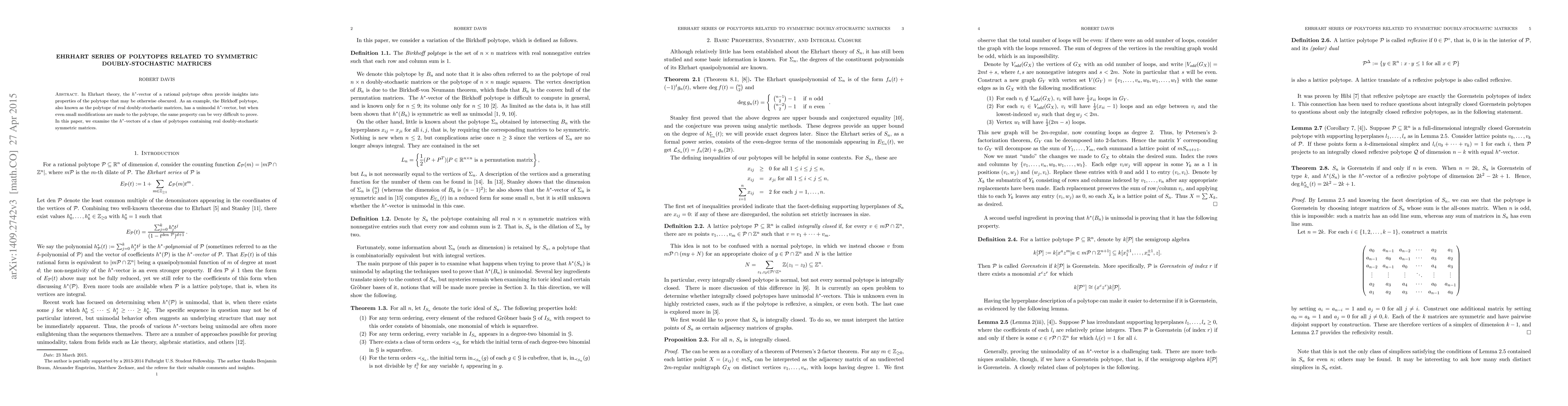 This paper investigates the $h^*$-vectors of polytopes associated with real doubly-stochastic symmetric matrices, demonstrating how these vectors can provide insights into the properties of the polytopes, particularly in cases where modifications complicate traditional proofs. The focus is on understanding the implications of the $h^*$-vector's unimodality in this context.