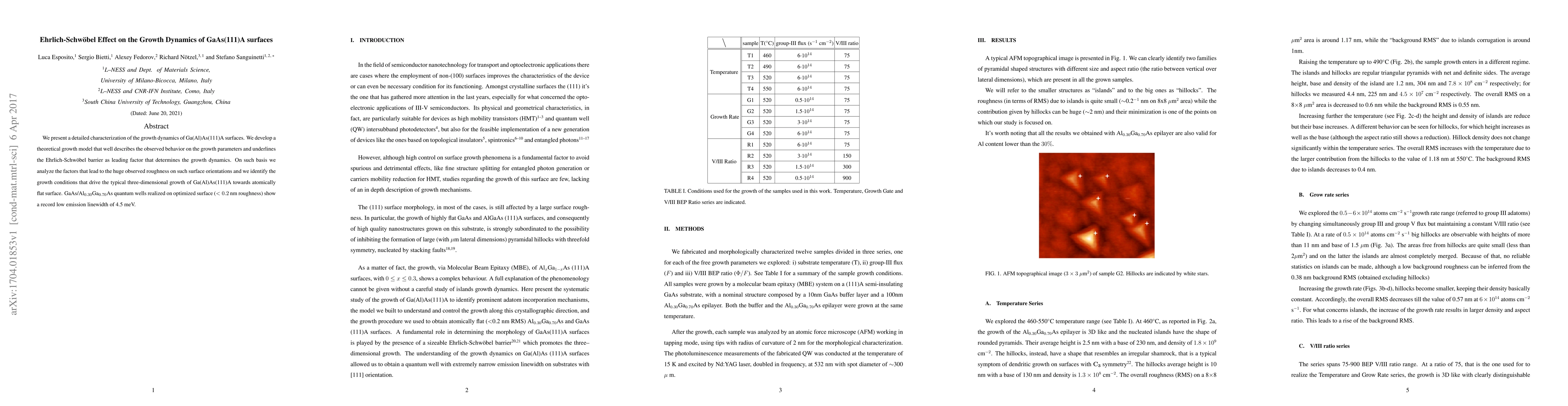 This research details a theoretical growth model for Ga(Al)As(111)A surfaces, highlighting the Ehrlich-Schwoebel barrier's crucial role in determining growth dynamics. The study identifies conditions for atomically flat surfaces, leading to record low emission linewidths in GaAs/AlGaAs quantum wells.