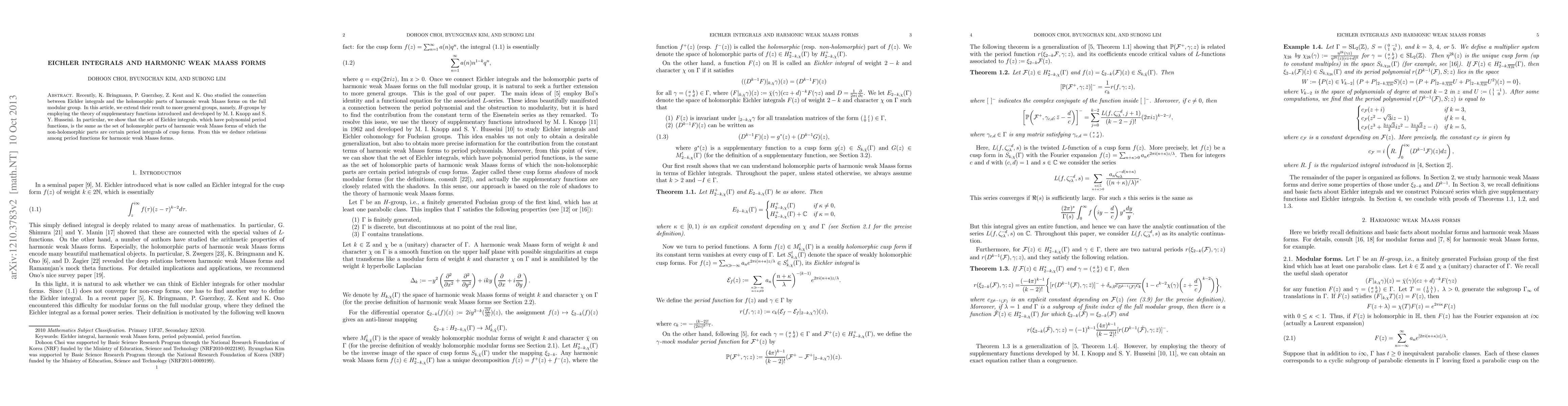 This paper extends the relationship between Eichler integrals and harmonic weak Maass forms to more general $H$-groups using supplementary function theory. It establishes that Eichler integrals correspond to holomorphic parts of these forms whose non-holomorphic parts are period integrals of cusp forms, leading to new relations among their period functions.