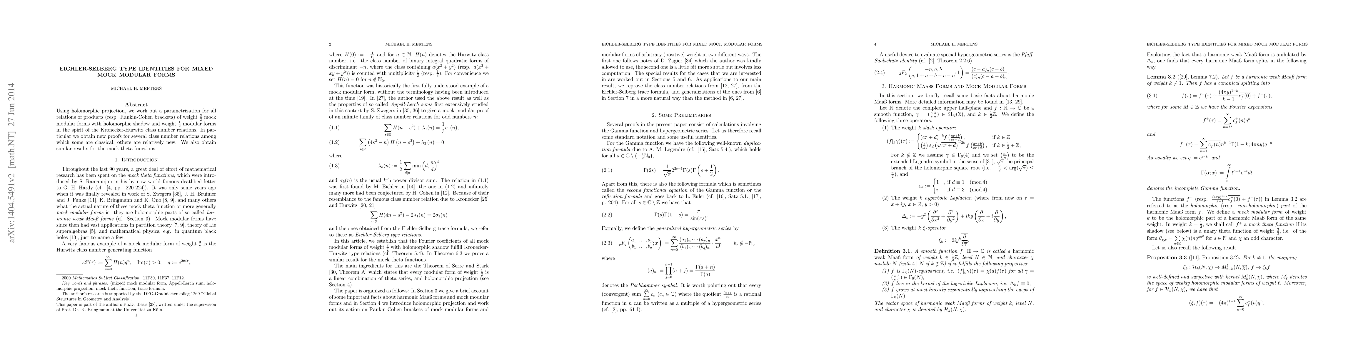 This paper derives Eichler-Selberg type identities for mixed mock modular forms through holomorphic projection, establishing new proofs for several class number relations and extending results to mock theta functions.