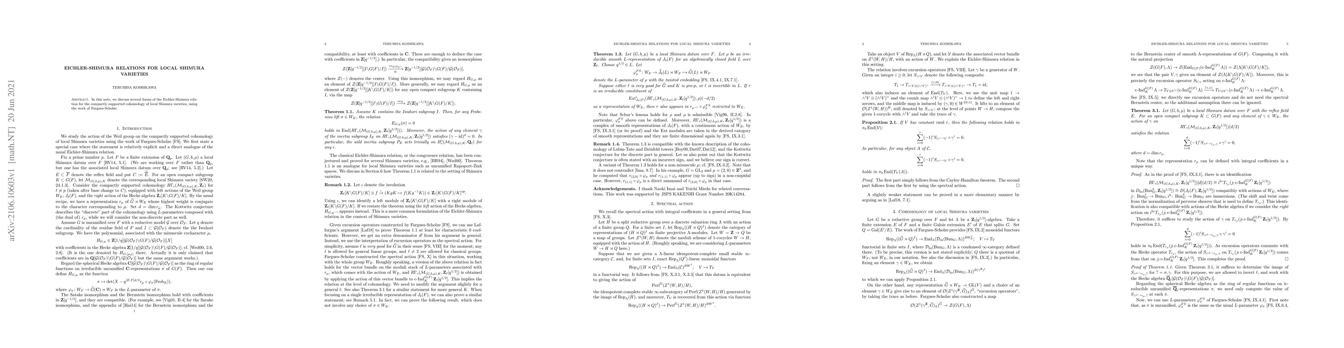 This paper explores various forms of the Eichler-Shimura relations in the context of compactly supported cohomology of local Shimura varieties, leveraging the foundational work of Fargues-Scholze to develop these connections.