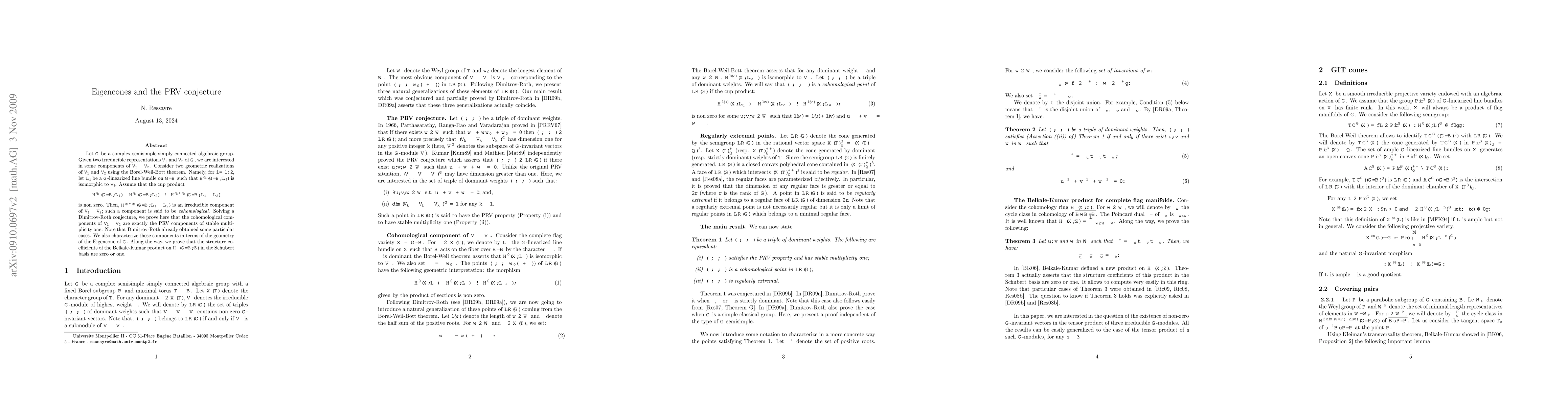 The paper proves that cohomological components of tensor products of representations are equal to PRV components of stable multiplicity one, using the Eigencone geometry.
