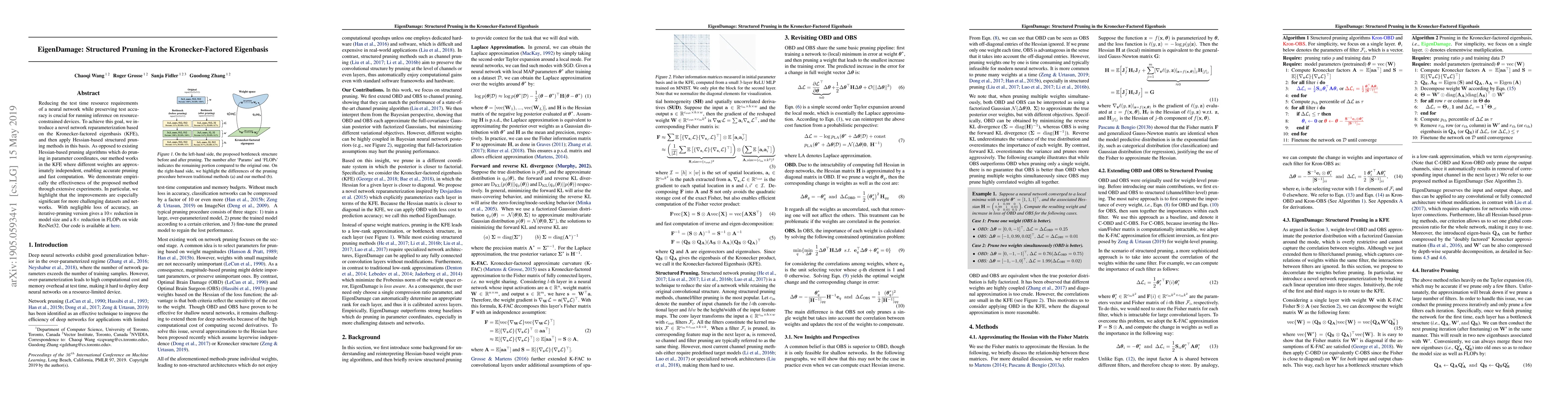 EigenDamage introduces a novel network reparameterization using the Kronecker-factored eigenbasis (KFE) for efficient neural network pruning, achieving significant reductions in model size and computational cost while preserving accuracy. The method demonstrates substantial improvements, especially for challenging datasets and networks.