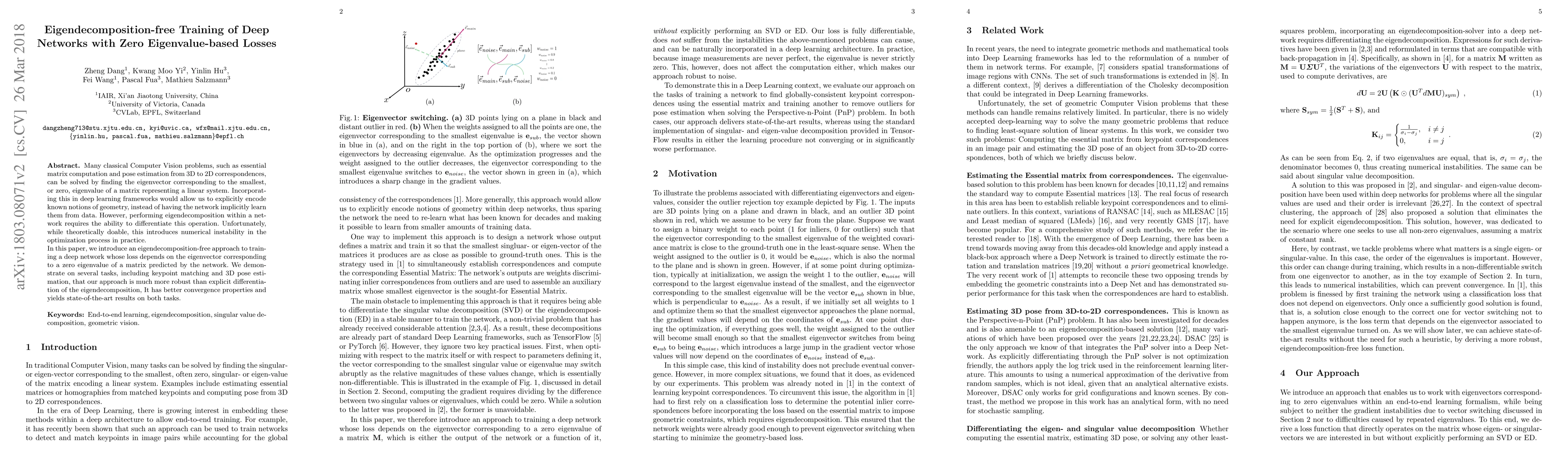 Many classical Computer Vision problems, such as essential matrix computation and pose estimation from 3D to 2D correspondences, can be solved by finding the eigenvector corresponding to the smallest, or zero, eigenvalue of a matrix representing a linear system. Incorporating this in deep learning frameworks would allow us to explicitly encode known notions of geometry, instead of having the network implicitly learn them from data. However, performing eigendecomposition within a network requires the ability to differentiate this operation. Unfortunately, while theoretically doable, this introduces numerical instability in the optimization process in practice. In this paper, we introduce an eigendecomposition-free approach to training a deep network whose loss depends on the eigenvector corresponding to a zero eigenvalue of a matrix predicted by the network. We demonstrate on several tasks, including keypoint matching and 3D pose estimation, that our approach is much more robust than explicit differentiation of the eigendecomposition, It has better convergence properties and yields state-of-the-art results on both tasks.