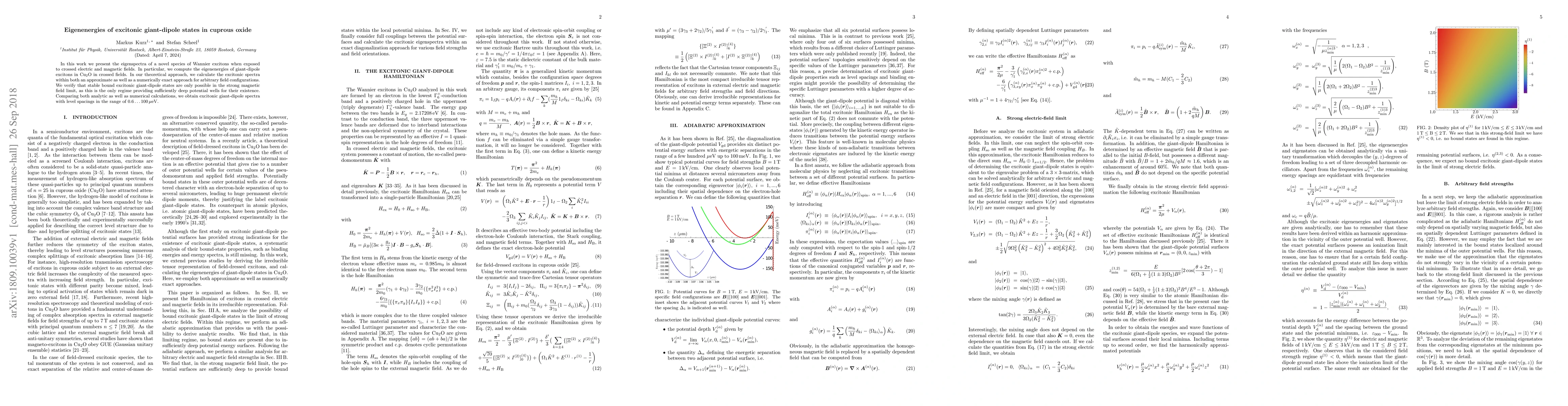This paper investigates the eigenspectra of Wannier excitons in cuprous oxide under crossed electric and magnetic fields, revealing stable giant-dipole exciton states only in strong magnetic fields. The study combines approximate and numerically exact methods to compute excitonic spectra, yielding eigenenergies with spacings ranging from $0.6$ to $100\,\mu\textrm{eV}$.