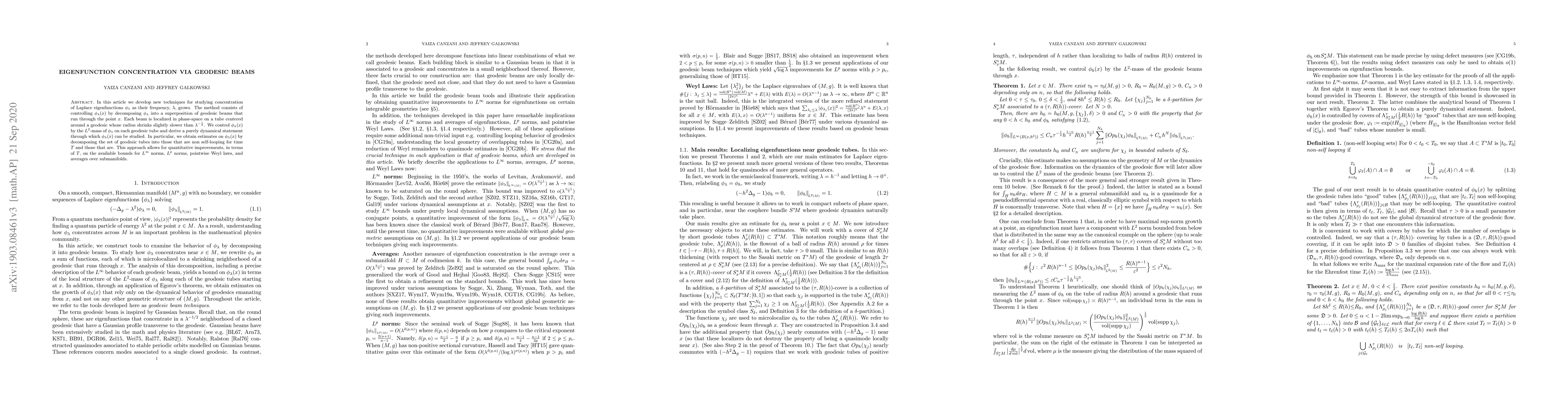 Researchers develop a new method to study the behavior of eigenfunctions as their frequency grows, using geodesic beams that control the concentration of these functions.