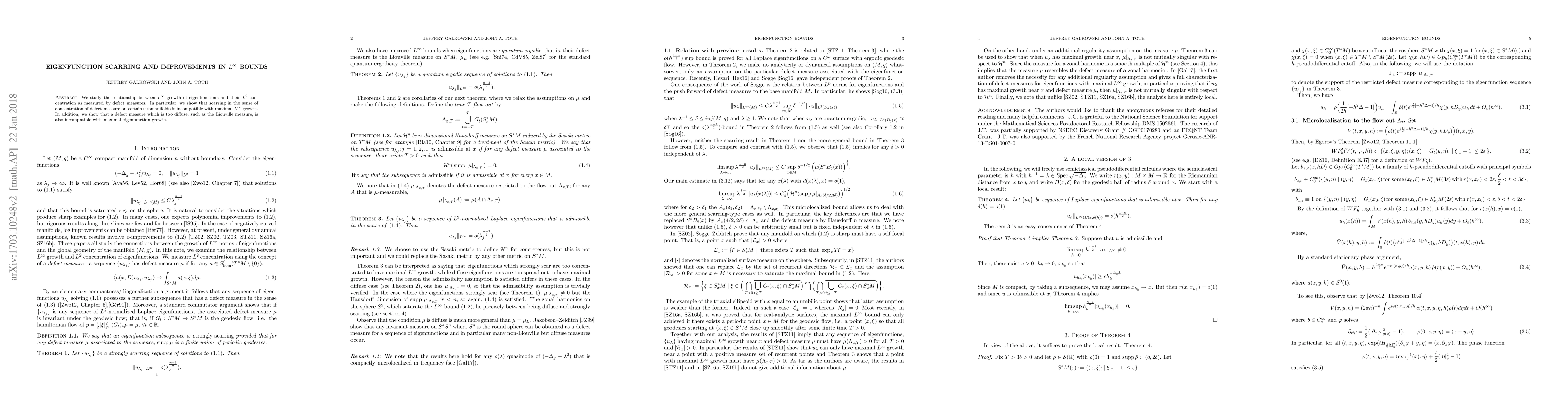 This paper explores the connection between the $L^\infty$ growth of eigenfunctions and their $L^2$ concentration, demonstrating that eigenfunction scarring, characterized by concentration on submanifolds, precludes maximal $L^\infty$ growth. It also shows that diffuse defect measures, like the Liouville measure, are incompatible with maximal eigenfunction growth.