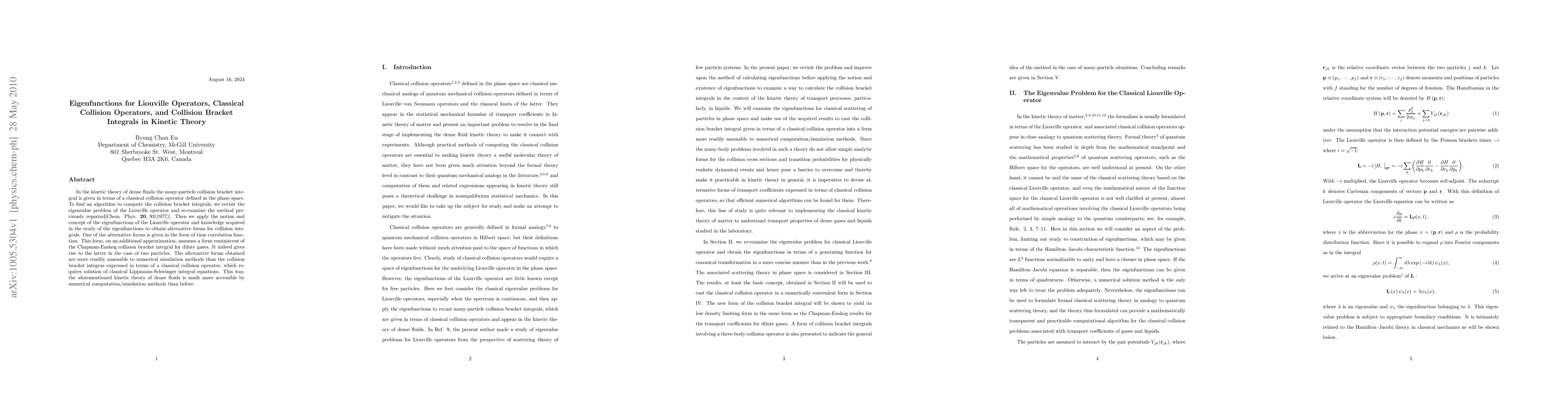This paper explores the eigenvalue problem of Liouville operators to derive alternative forms for collision integrals in kinetic theory, offering a more computationally accessible approach than classical methods. The new forms, particularly a time correlation function, simplify numerical simulations and approximate Chapman-Enskog integrals for dilute gases.