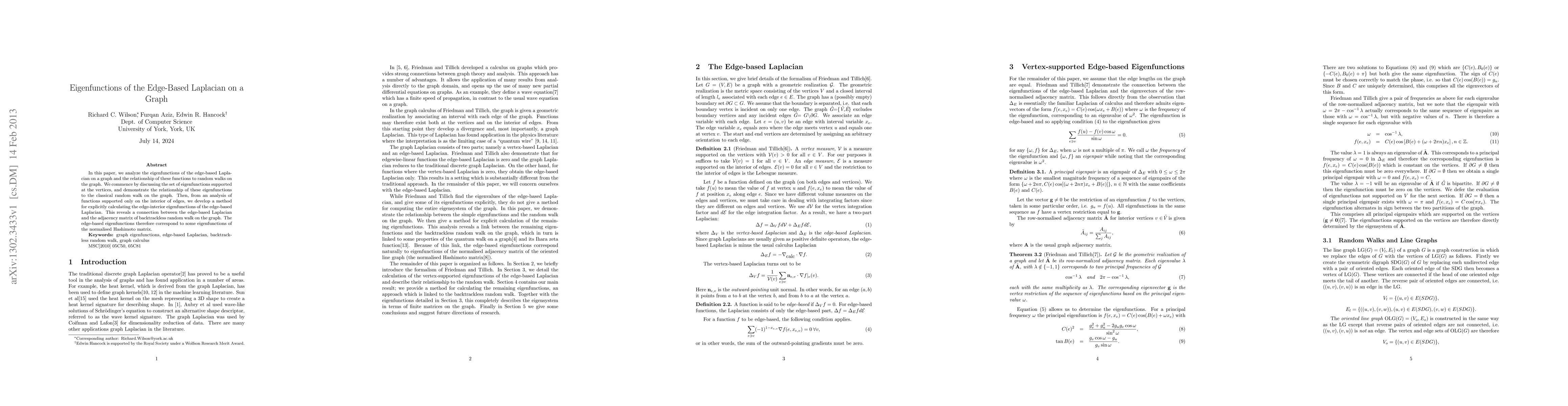 The paper presents explicit forms for eigenfunctions of the edge-based Laplacian, connecting them to random walks and the oriented line graph's adjacency matrix.