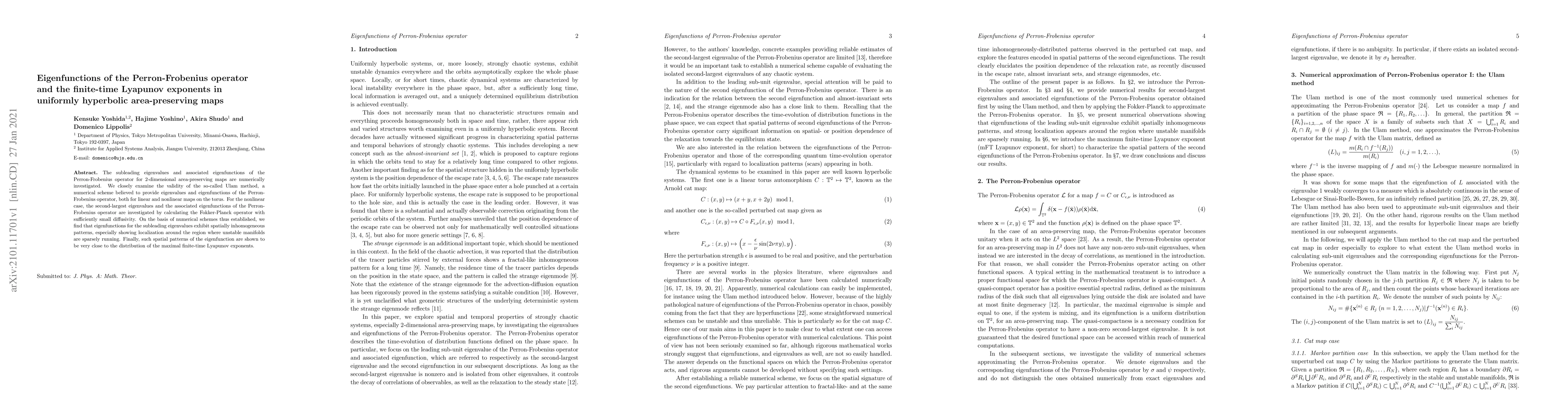 This paper investigates the subleading eigenvalues and eigenfunctions of the Perron-Frobenius operator in 2-dimensional area-preserving maps, employing the Ulam method to numerically validate these results. It finds that eigenfunctions for subleading eigenvalues exhibit localization near regions with sparse unstable manifolds and closely correlate with the distribution of maximal finite-time Lyapunov exponents.