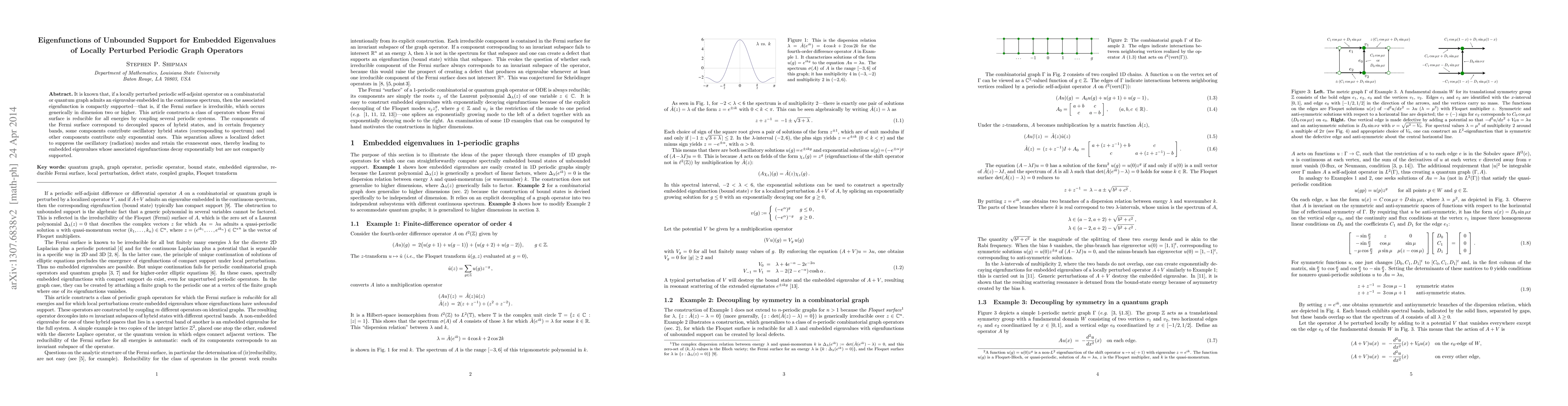 It is known that, if a locally perturbed periodic self-adjoint operator on a combinatorial or quantum graph admits an eigenvalue embedded in the continuous spectrum, then the associated eigenfunction is compactly supported--that is, if the Fermi surface is irreducible, which occurs generically in dimension two or higher. This article constructs a class of operators whose Fermi surface is reducible for all energies by coupling several periodic systems. The components of the Fermi surface correspond to decoupled spaces of hybrid states, and in certain frequency bands, some components contribute oscillatory hybrid states (corresponding to spectrum) and other components contribute only exponential ones. This separation allows a localized defect to suppress the oscillatory (radiation) modes and retain the evanescent ones, thereby leading to embedded eigenvalues whose associated eigenfunctions decay exponentially but are not compactly supported.