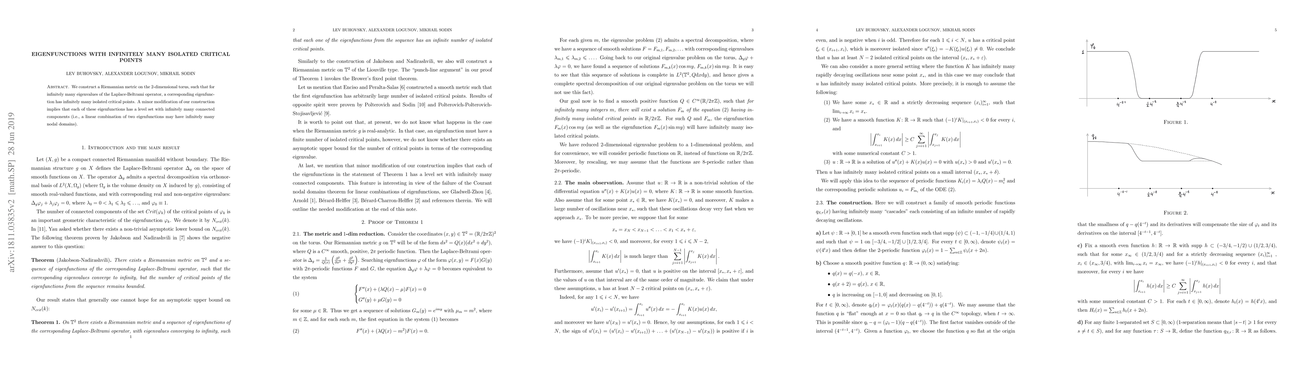 This paper constructs a Riemannian metric on a 2-dimensional torus where eigenfunctions corresponding to infinitely many eigenvalues of the Laplace-Beltrami operator exhibit infinitely many isolated critical points. A slight modification allows these eigenfunctions to have level sets with infinitely many connected components.