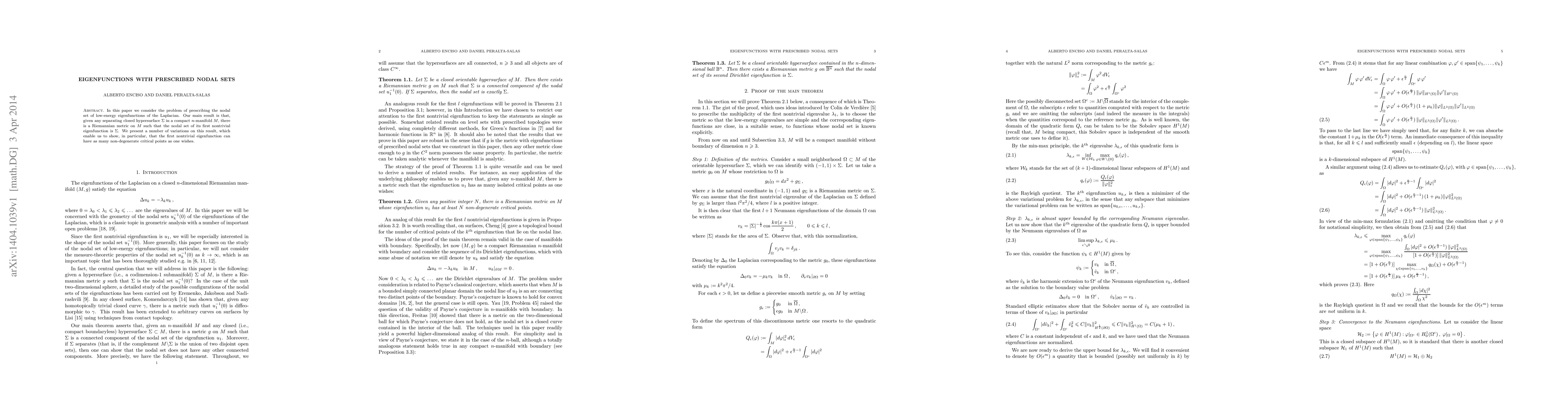In this paper we consider the problem of prescribing the nodal set of low-energy eigenfunctions of the Laplacian. Our main result is that, given any separating closed hypersurface \Sigma in a compact n-manifold M, there is a Riemannian metric on M such that the nodal set of its first nontrivial eigenfunction is \Sigma. We present a number of variations on this result, which enable us to show, in particular, that the first nontrivial eigenfunction can have as many non-degenerate critical points as one wishes.