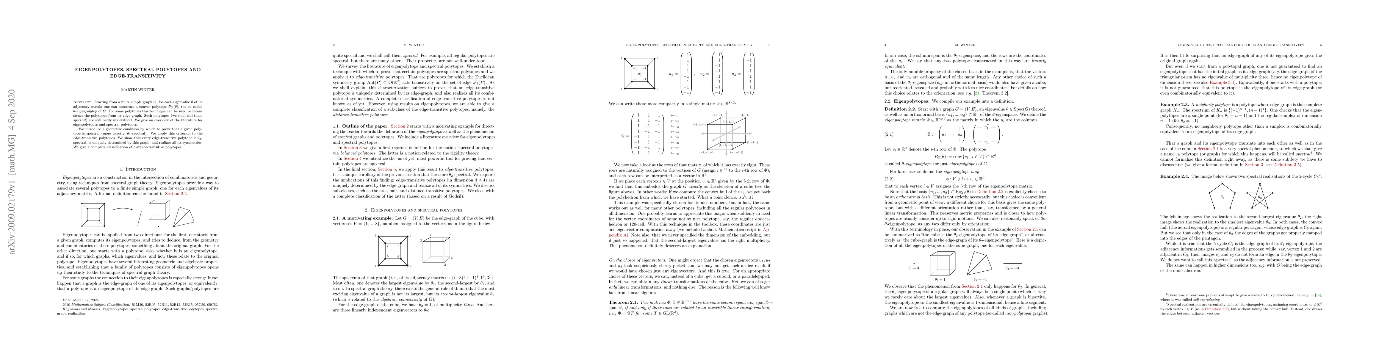 This paper explores the relationship between eigenpolytopes and spectral polytopes derived from the adjacency matrices of finite simple graphs. It introduces a geometric criterion to determine if a polytope is spectral and applies this to classify edge-transitive polytopes, showing they are uniquely determined by their graph and realize all their symmetries.