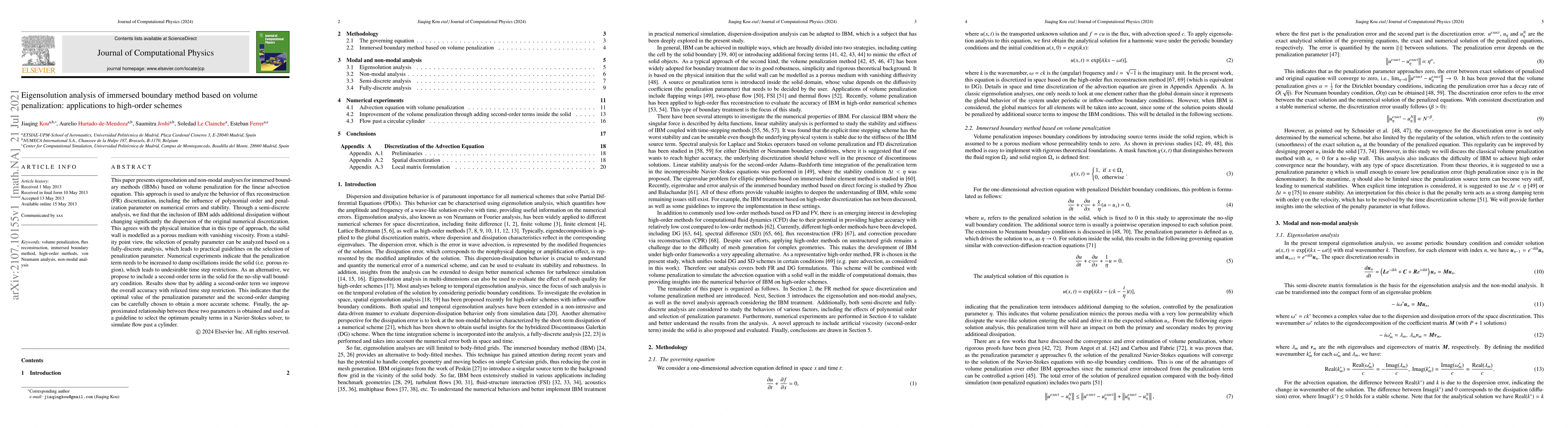 This paper conducts eigensolution and non-modal analyses of immersed boundary methods based on volume penalization for linear advection, revealing the impact of polynomial order and penalization parameter on numerical stability and error. The study proposes a second-order damping term to improve accuracy and relax time step restrictions, providing guidelines for optimal parameter selection in Navier-Stokes simulations.