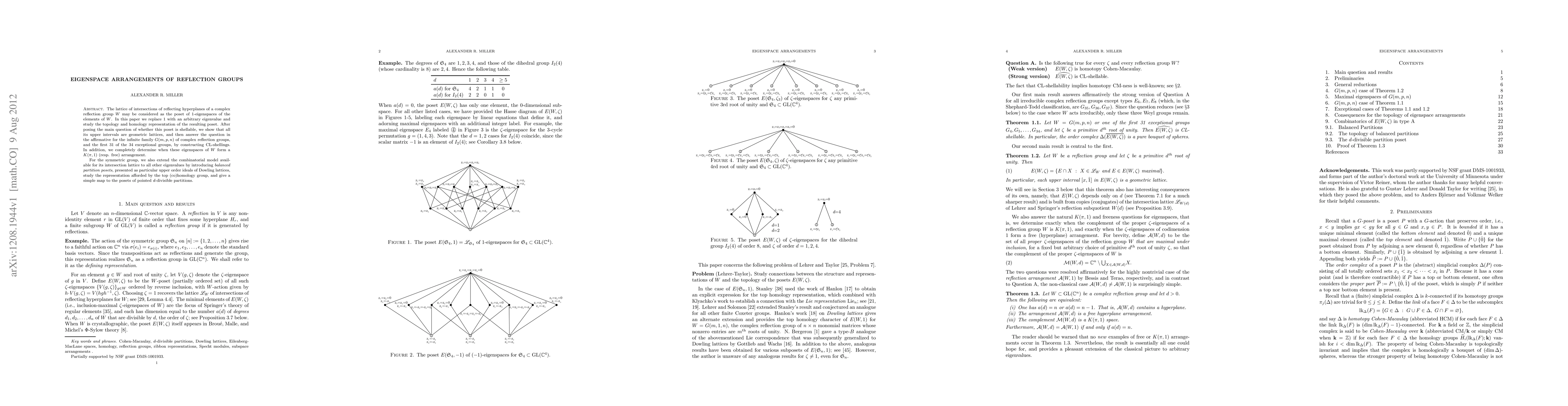 The lattice of intersections of reflecting hyperplanes of a complex reflection group W may be considered as the poset of 1-eigenspaces of the elements of W. In this paper we replace 1 with an arbitrary eigenvalue and study the topology and homology representation of the resulting poset. After posing the main question of whether this poset is shellable, we show that all its upper intervals are geometric lattices, and then answer the question in the affirmative for the infinite family G(m,p,n) of complex reflection groups, and the first 31 of the 34 exceptional groups, by constructing CL-shellings. In addition, we completely determine when these eigenspaces of W form a K(pi,1) (resp. free) arrangement. For the symmetric group, we also extend the combinatorial model available for its intersection lattice to all other eigenvalues by introducing "balanced partition posets", presented as particular upper order ideals of Dowling lattices, study the representation afforded by the top (co)homology group, and give a simple map to the posets of pointed d-divisible partitions.