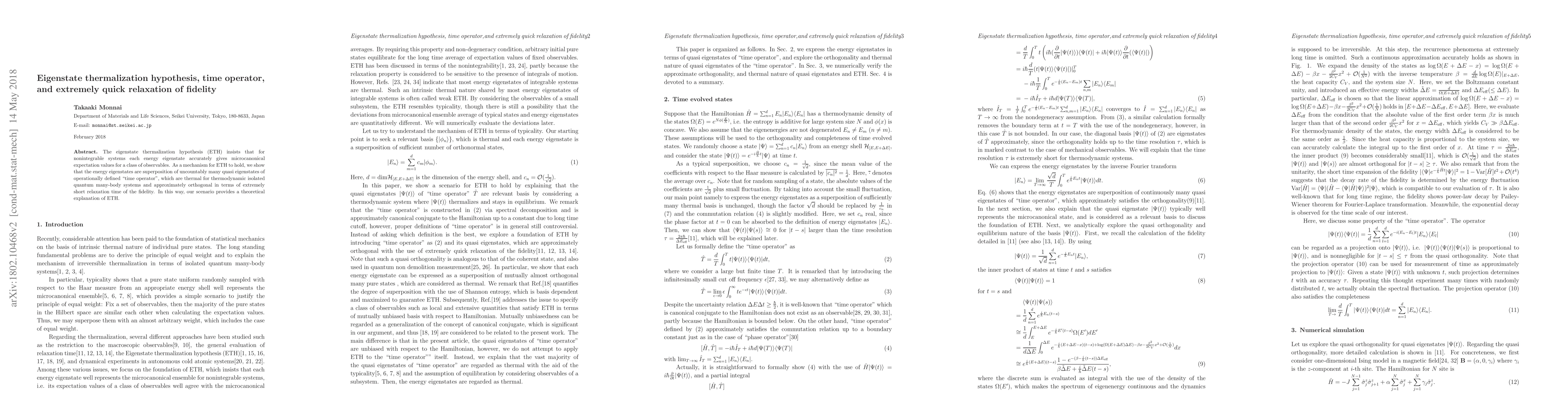 A new theory explains how quantum systems quickly return to a state of thermal equilibrium, known as eigenstate thermalization hypothesis, through the use of a 'time operator' that produces superpositions of quasi-eigenstates.