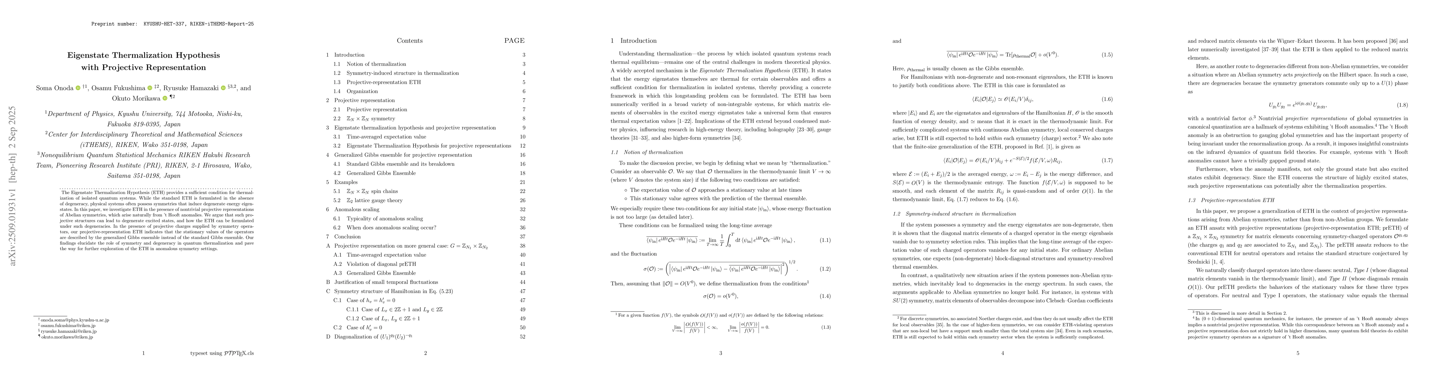 The Eigenstate Thermalization Hypothesis (ETH) provides a sufficient condition for thermalization of isolated quantum systems. While the standard ETH is formulated in the absence of degeneracy, physical systems often possess symmetries that induce degenerate energy eigenstates. In this paper, we investigate ETH in the presence of nontrivial projective representations of Abelian symmetries, which arise naturally from 't Hooft anomalies. We argue that such projective structures can lead to degenerate excited states, and how the ETH can be formulated under such degeneracies. In the presence of projective charges supplied by symmetry operators, our projective-representation ETH indicates that the stationary values of the operators are described by the generalized Gibbs ensemble instead of the standard Gibbs ensemble. Our findings elucidate the role of symmetry and degeneracy in quantum thermalization and pave the way for further exploration of the ETH in anomalous symmetry settings.
