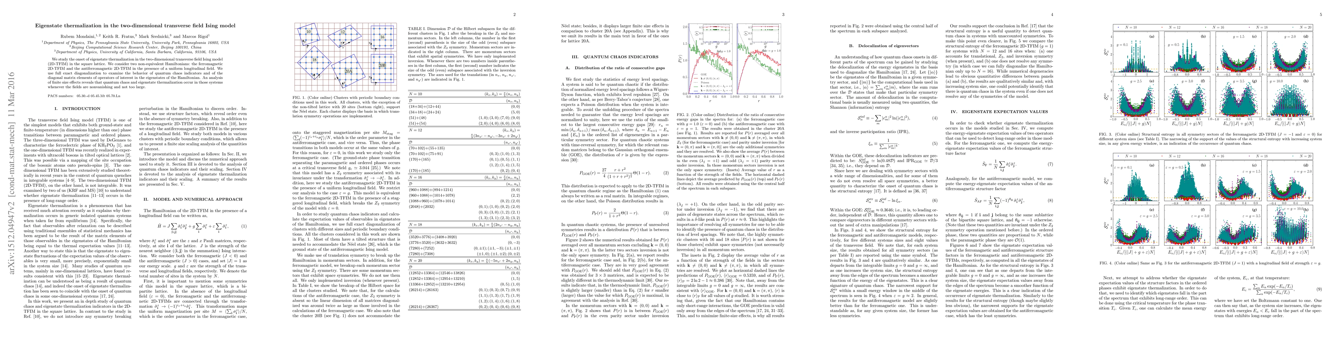 The study uses full exact diagonalization to examine quantum chaos indicators and diagonal matrix elements of operators of interest in the eigenstates of the Hamiltonian for two non-equivalent Hamiltonians: the ferromagnetic 2D-TFIM and the antiferromagnetic 2D-TFIM with a uniform longitudinal field.