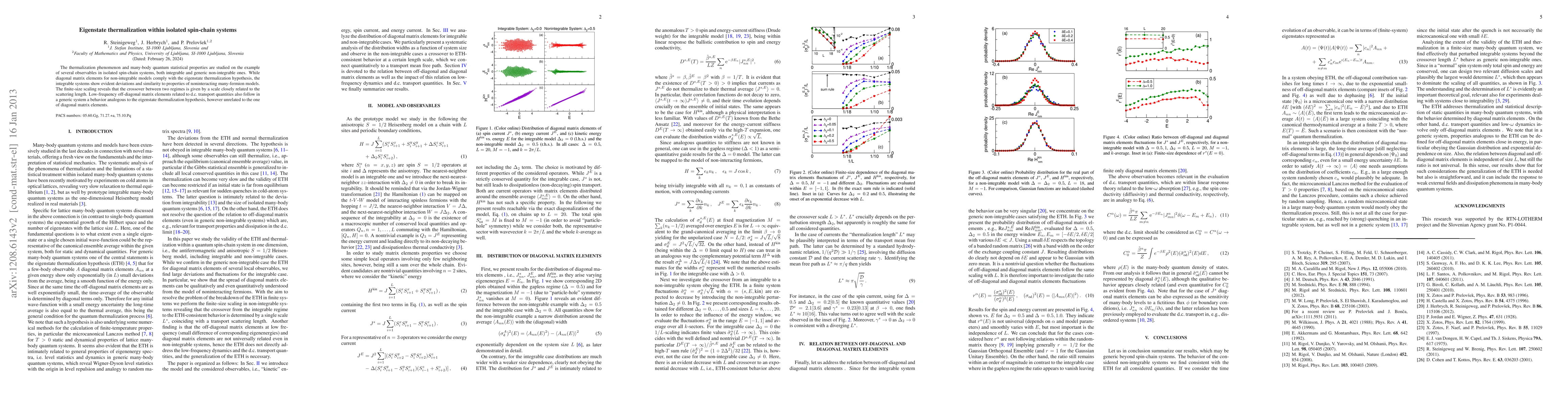 This paper investigates thermalization in isolated spin-chain systems, finding that non-integrable models adhere to the eigenstate thermalization hypothesis (ETH), while integrable systems deviate. The crossover between regimes is linked to the scattering length, and low-frequency off-diagonal elements related to transport also follow ETH-like behavior.