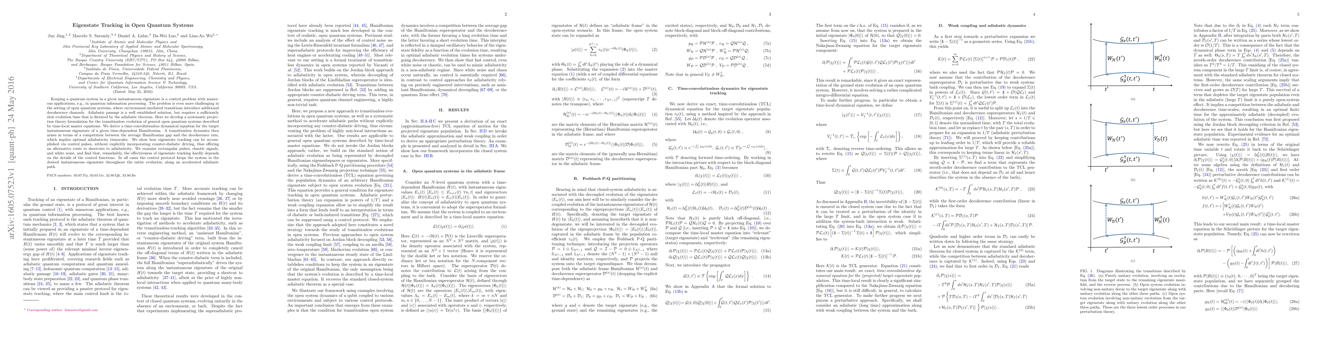 This paper develops a projection theory for tracking eigenstates in open quantum systems, offering a novel approach to adiabatic passage without requiring slow evolution. The proposed method uses control pulses to achieve transitionless dynamics, demonstrating robustness across various control functions while maintaining the system in the desired eigenstate.