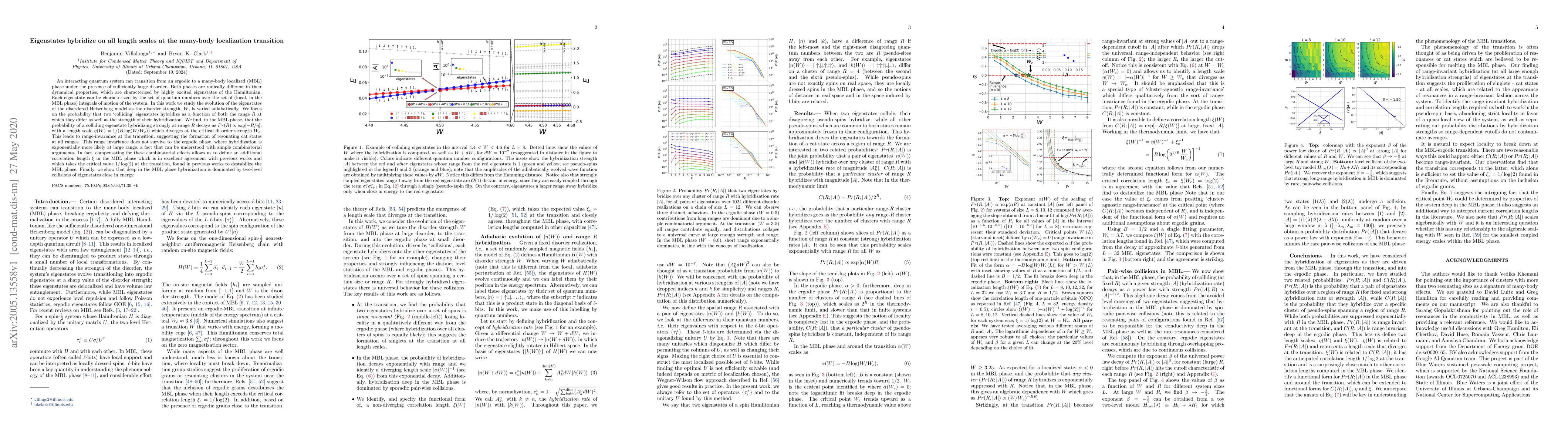An interacting quantum system can transition from an ergodic to a many-body localized (MBL) phase under the presence of sufficiently large disorder. Both phases are radically different in their dynamical properties, which are characterized by highly excited eigenstates of the Hamiltonian. Each eigenstate can be characterized by the set of quantum numbers over the set of (local, in the MBL phase) integrals of motion of the system. In this work we study the evolution of the eigenstates of the disordered Heisenberg model as the disorder strength, $W$, is varied adiabatically. We focus on the probability that two `colliding' eigenstates hybridize as a function of both the range $R$ at which they differ as well as the strength of their hybridization. We find, in the MBL phase, that the probability of a colliding eigenstate hybridizing strongly at range $R$ decays as $Pr(R)\propto \exp [-R/\eta]$, with a length scale $\eta(W) = 1 / (B \log(W / W_c) )$ which diverges at the critical disorder strength $W_c$. This leads to range-invariance at the transition, suggesting the formation of resonating cat states at all ranges. This range invariance does not survive to the ergodic phase, where hybridization is exponentially more likely at large range, a fact that can be understood with simple combinatorial arguments. In fact, compensating for these combinatorial effects allows us to define an additional correlation length $\xi$ in the MBL phase which is in excellent agreement with previous works and which takes the critical value $1 / \log(2)$ at the transition, found in previous works to destabilize the MBL phase. Finally, we show that deep in the MBL phase hybridization is dominated by two-level collisions of eigenstates close in energy.