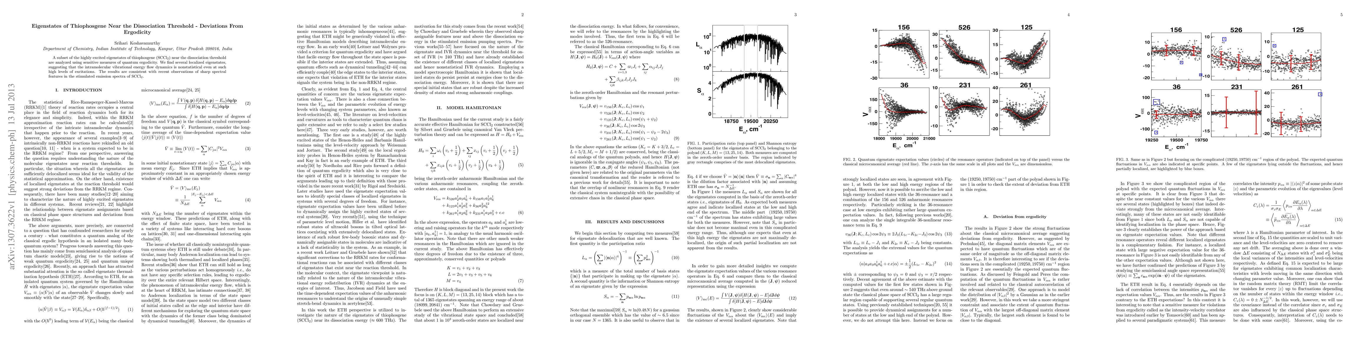 The study examines a set of thiophosgene's highly excited eigenstates near dissociation, revealing localized, non-statistical vibrational energy flow, challenging ergodicity assumptions. Findings align with observed sharp spectral features in its stimulated emission spectra.