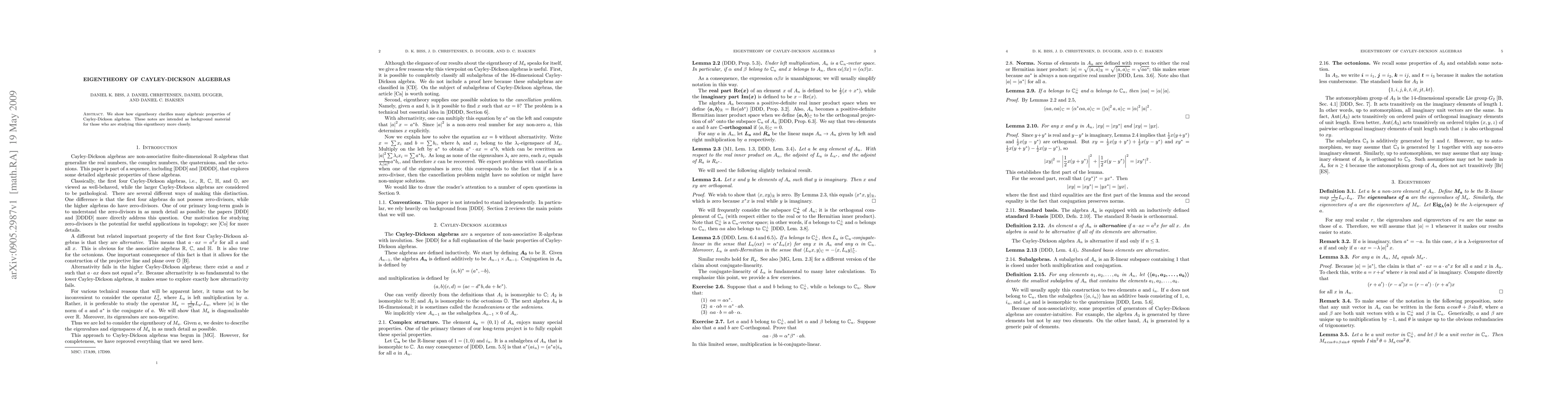We show how eigentheory clarifies many algebraic properties of Cayley-Dickson algebras. These notes are intended as background material for those who are studying this eigentheory more closely.
