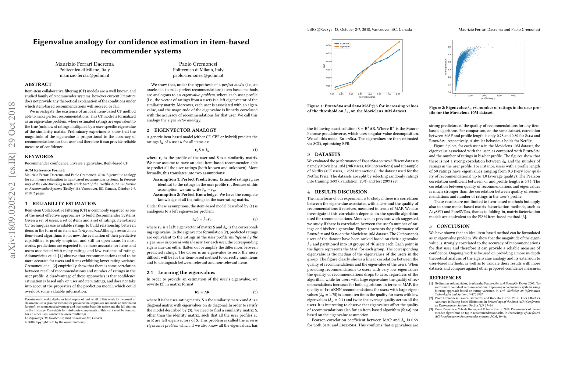 Researchers found that a new method for confidence estimation in item-based recommender systems uses eigenvalue analysis to determine how accurate individual user predictions will be. This can provide reliable measures of confidence in recommendations.