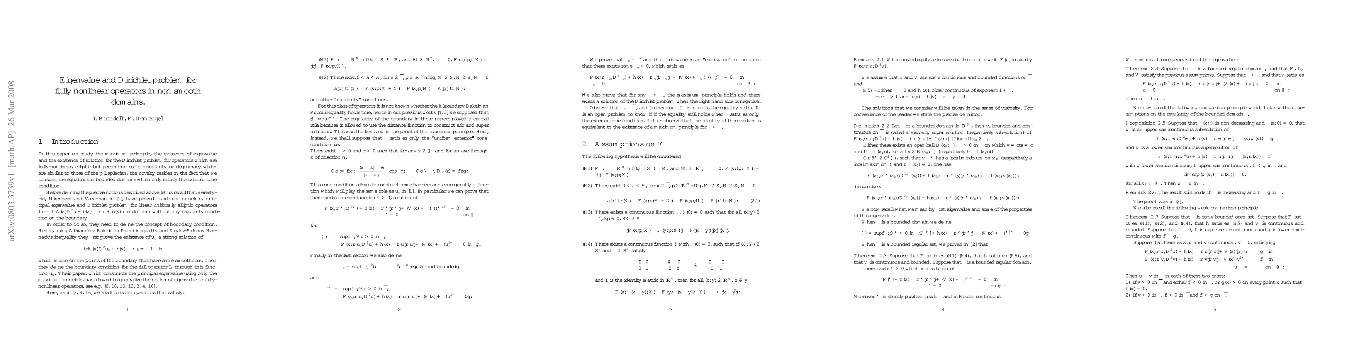 In this paper we study the maximum principle, the existence of eigenvalue and the existence of solution for the Dirichlet problem for operators which are fully-nonlinear, elliptic but presenting some singularity or degeneracy which are similar to those of the p-Laplacian, the novelty resides in the fact that we consider the equations in bounded domains which only satisfy the exterior cone condition.