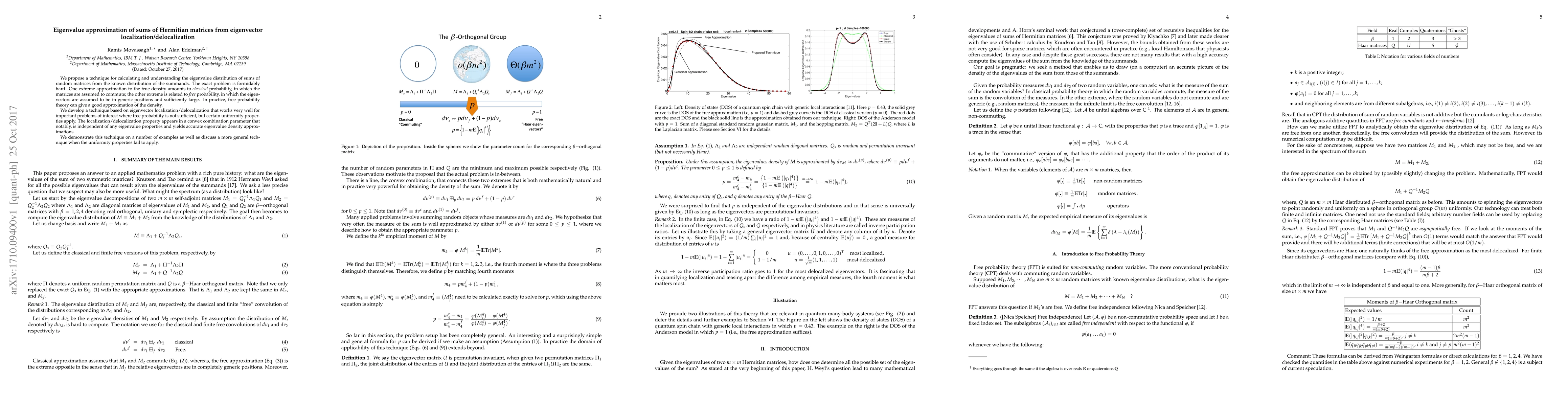 Researchers develop a technique to approximate eigenvalue distributions of sums of Hermitian matrices using eigenvector localization/delocalization properties, achieving accurate results in cases where free probability theory is insufficient.