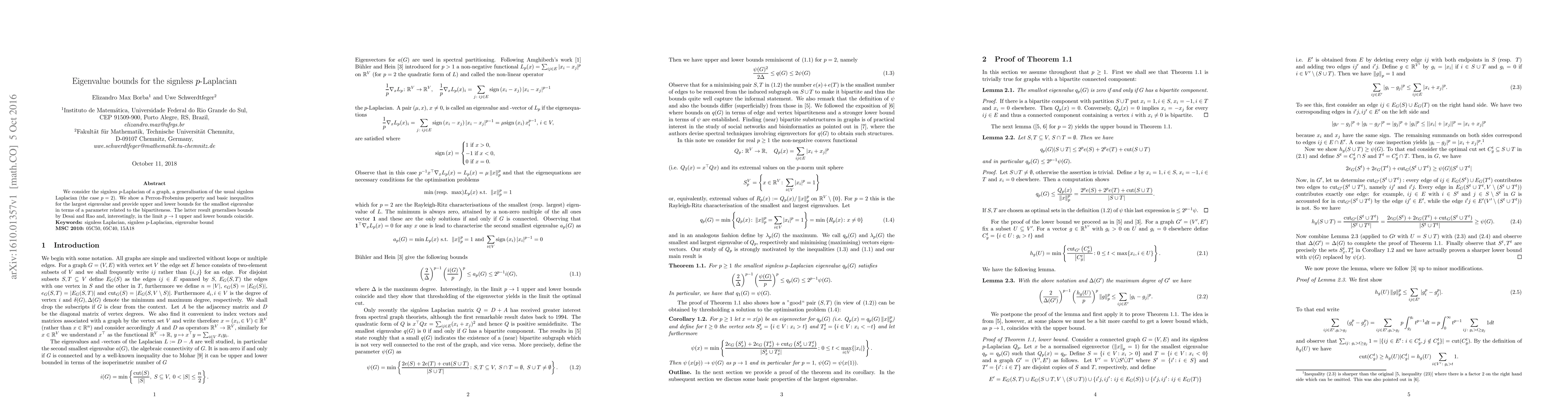 The paper presents novel bounds for the eigenvalues of the signless $p$-Laplacian, extending previous work by Desai and Rao, and establishes a Perron-Frobenius property for the largest eigenvalue.