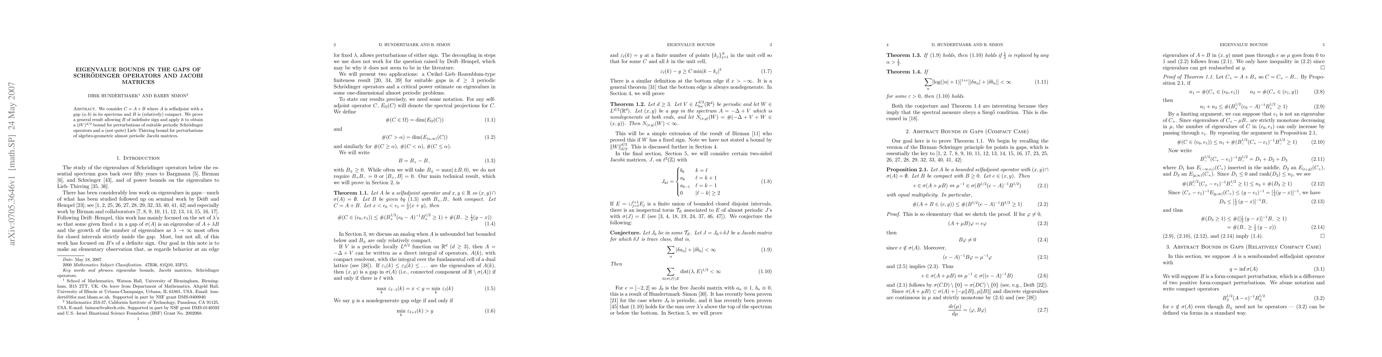 This research paper establishes bounds for perturbations of Schrodinger operators and Jacobi matrices, providing new results in quantum mechanics and algebraic geometry, with implications for understanding energy gaps and eigenvalues.