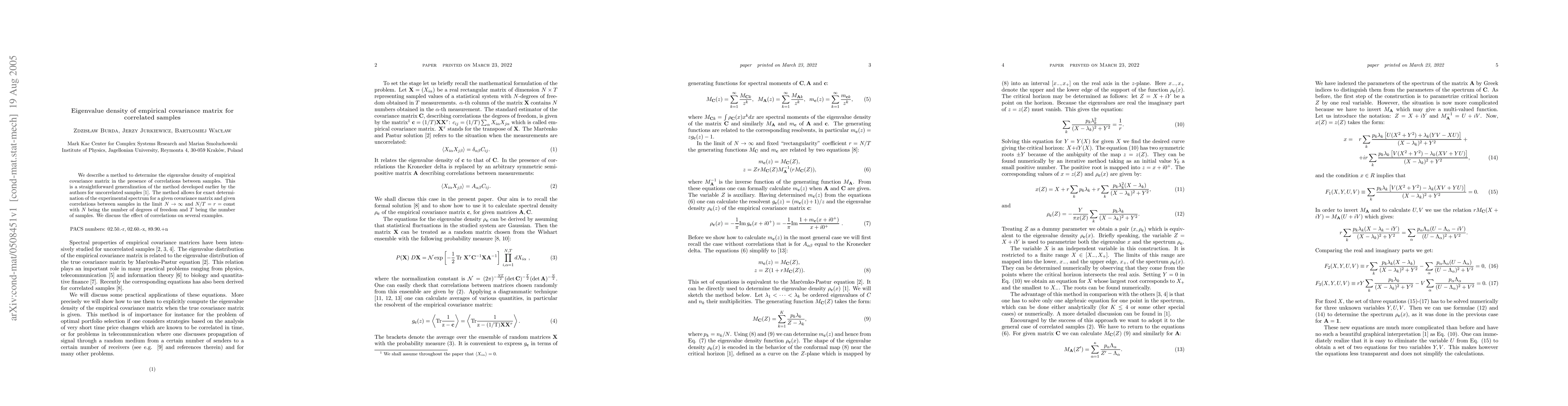 We describe a method to determine the eigenvalue density of empirical covariance matrix in the presence of correlations between samples. This is a straightforward generalization of the method developed earlier by the authors for uncorrelated samples. The method allows for exact determination of the experimental spectrum for a given covariance matrix and given correlations between samples in the limit of large N and N/T=r=const with N being the number of degrees of freedom and T being the number of samples. We discuss the effect of correlations on several examples.