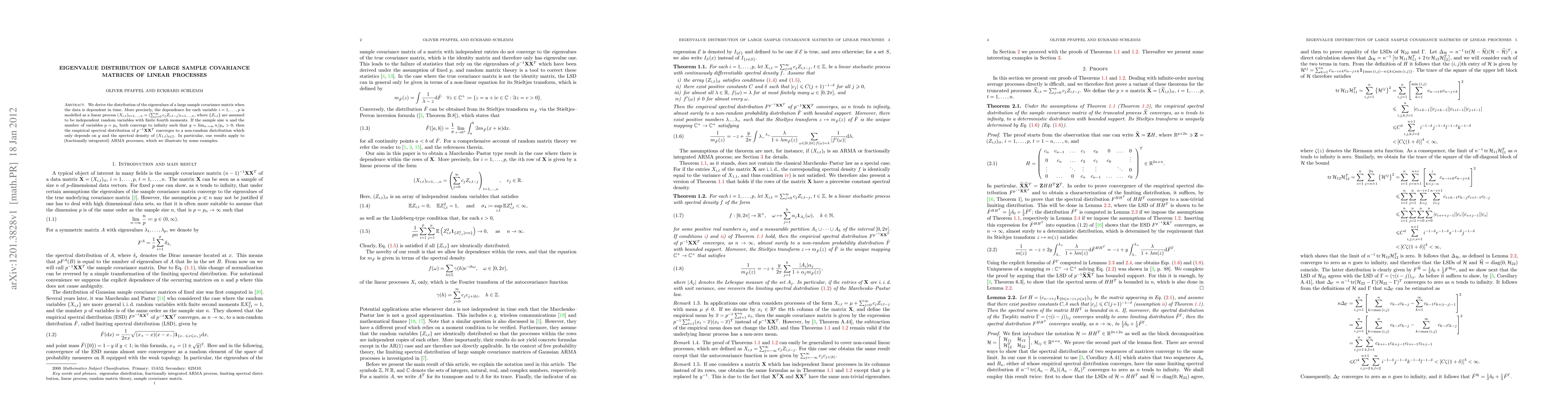 Researchers derived a non-random distribution of eigenvalues for large sample covariance matrices of linear processes with dependent data, depending on the convergence rate of sample size and variables.
