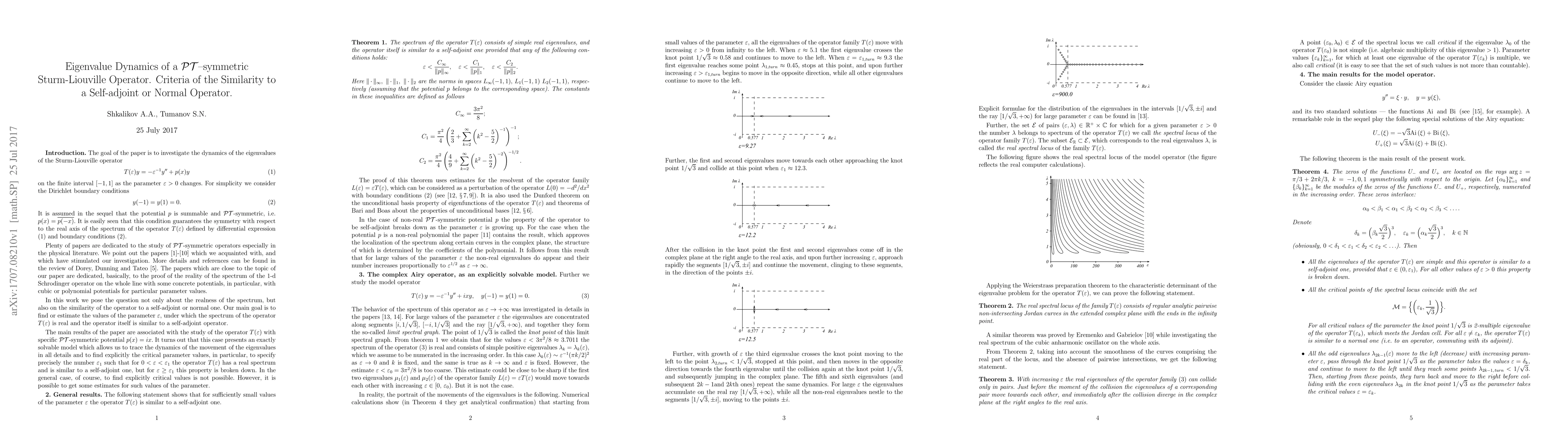 This research paper investigates the dynamics of eigenvalues in a PT-symmetric Sturm-Liouville operator, finding critical parameter values for real spectrum and similarity to self-adjoint operators.