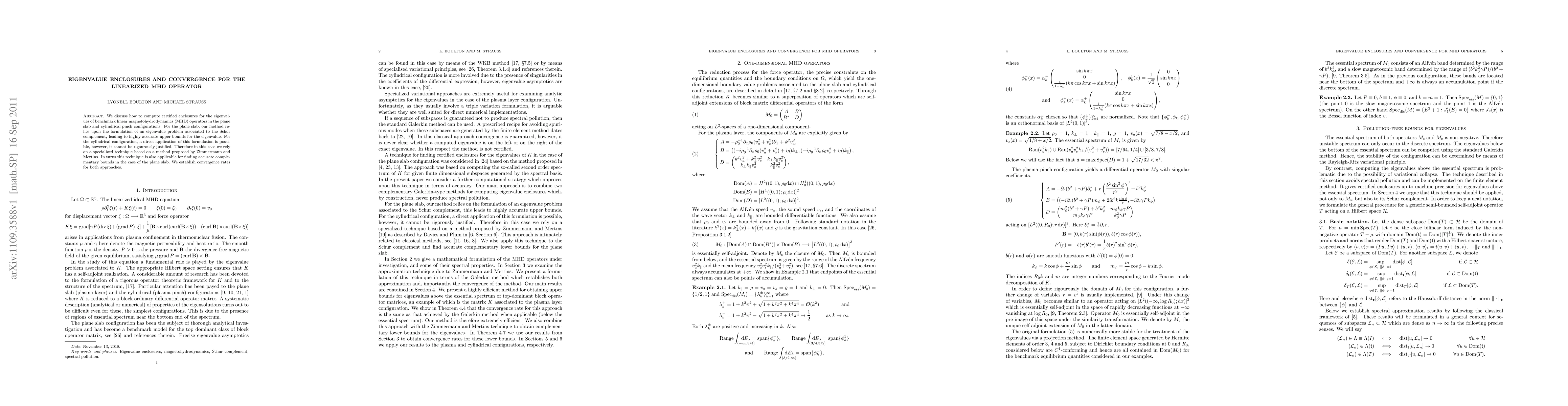 This paper develops methods to compute certified enclosures for eigenvalues of linear magnetohydrodynamics operators in two configurations, with established convergence rates.