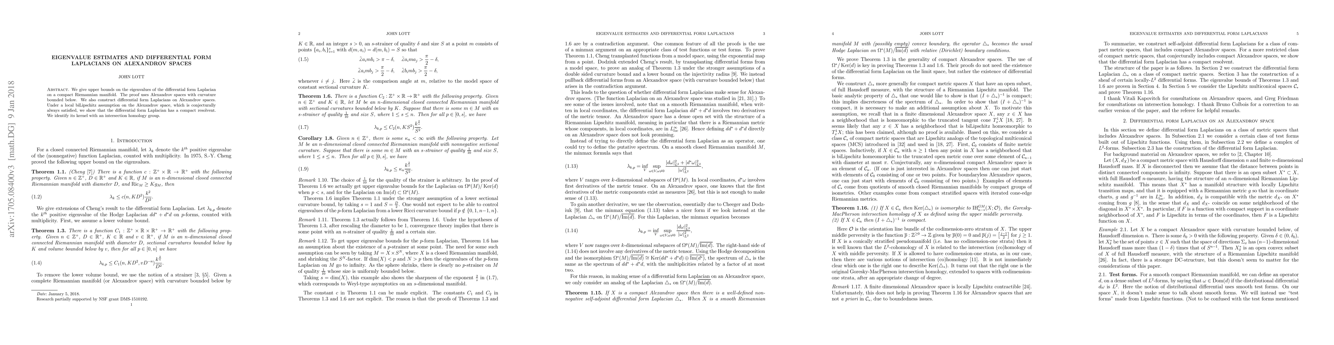 Researchers provide upper bounds on eigenvalues of differential form Laplacian on compact Riemannian manifolds with curvature bounded below, and show the operator has a compact resolvent under local biLipschitz assumptions.