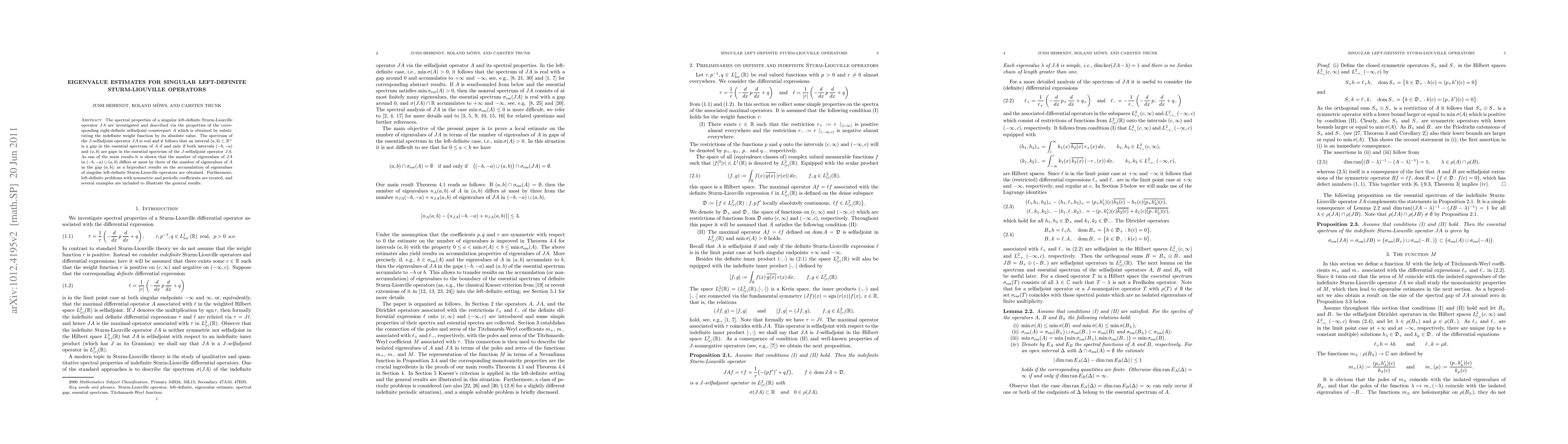 The paper establishes a connection between the spectral properties of singular left-definite Sturm-Liouville operators and their self-adjoint counterparts, providing novel estimates for eigenvalue distributions.