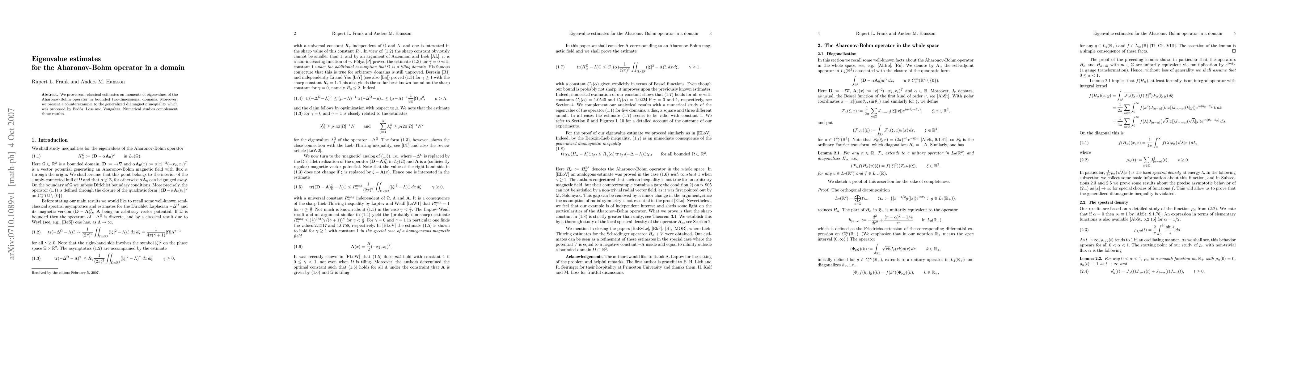 We prove semi-classical estimates on moments of eigenvalues of the Aharonov-Bohm operator in bounded two-dimensional domains. Moreover, we present a counterexample to the generalized diamagnetic inequality which was proposed by Erdos, Loss and Vougalter. Numerical studies complement these results.