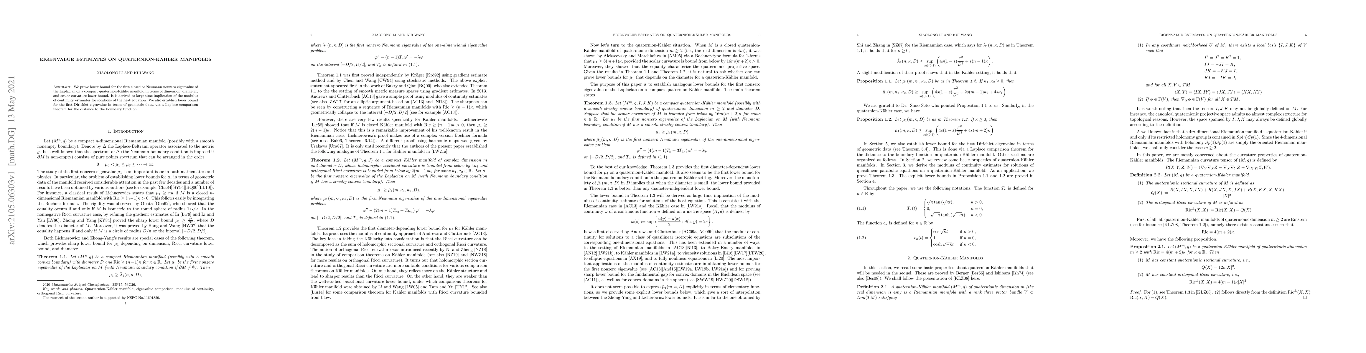 This paper establishes lower bounds for the first nonzero eigenvalues of the Laplacian on compact quaternion-Kähler manifolds, relating them to the manifold's dimension, diameter, and scalar curvature. The results are derived from the modulus of continuity estimates for heat equation solutions and a Laplace comparison theorem.