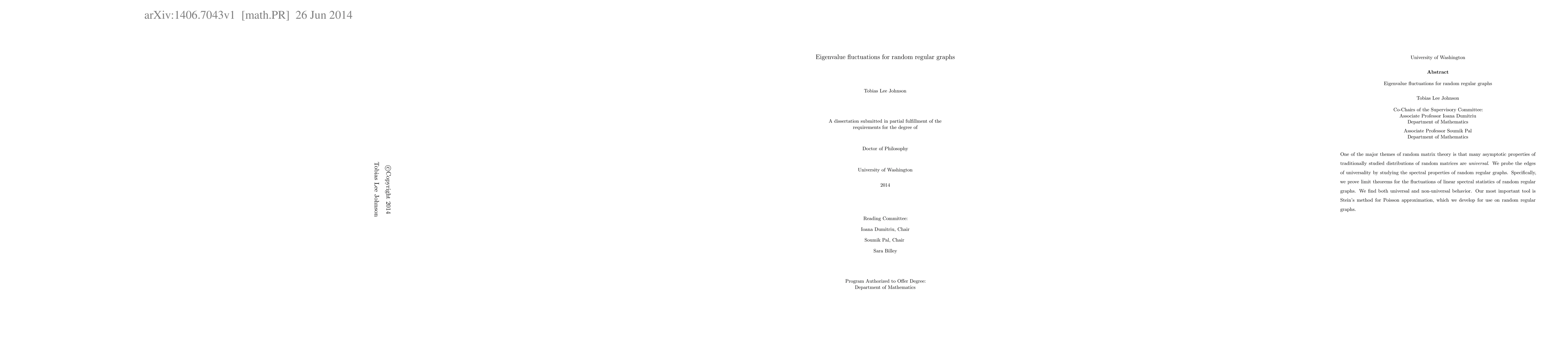 One of the major themes of random matrix theory is that many asymptotic properties of traditionally studied distributions of random matrices are universal. We probe the edges of universality by studying the spectral properties of random regular graphs. Specifically, we prove limit theorems for the fluctuations of linear spectral statistics of random regular graphs. We find both universal and non-universal behavior. Our most important tool is Stein's method for Poisson approximation, which we develop for use on random regular graphs. This is my Ph.D. thesis, based on joint work with Ioana Dumitriu, Elliot Paquette, and Soumik Pal. For the most part, it's a mashed up version of arXiv:1109.4094, arXiv:1112.0704, and arXiv:1203.1113, but some things in here are improved or new. In particular, Chapter 4 goes into more detail on some of the proofs than arXiv:1203.1113 and includes a new section. See Section 1.3 for more discussion on what's new and who contributed to what.