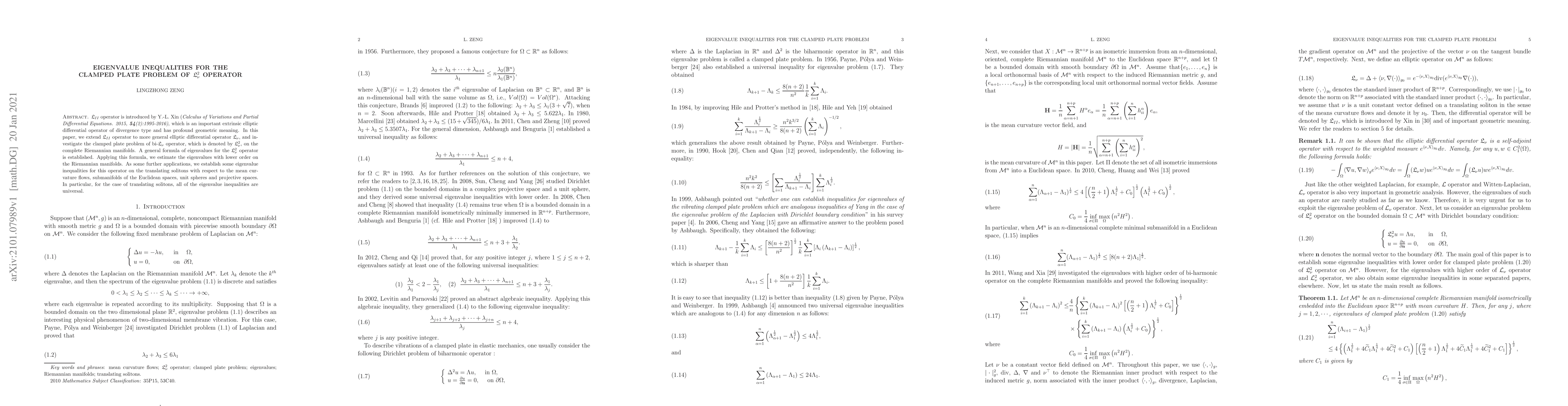 This paper extends the $\mathfrak{L}_{II}$ operator to the $\mathfrak{L}_{\nu}$ operator and studies the clamped plate problem of the bi-$\mathfrak{L}_{\nu}$ operator on complete Riemannian manifolds, establishing a general eigenvalue formula and lower-order eigenvalue estimates for $\mathfrak{L}_{\nu}^{2}$. The research also provides eigenvalue inequalities for various geometric settings, including translating solitons, submanifolds, unit spheres, and projective spaces.