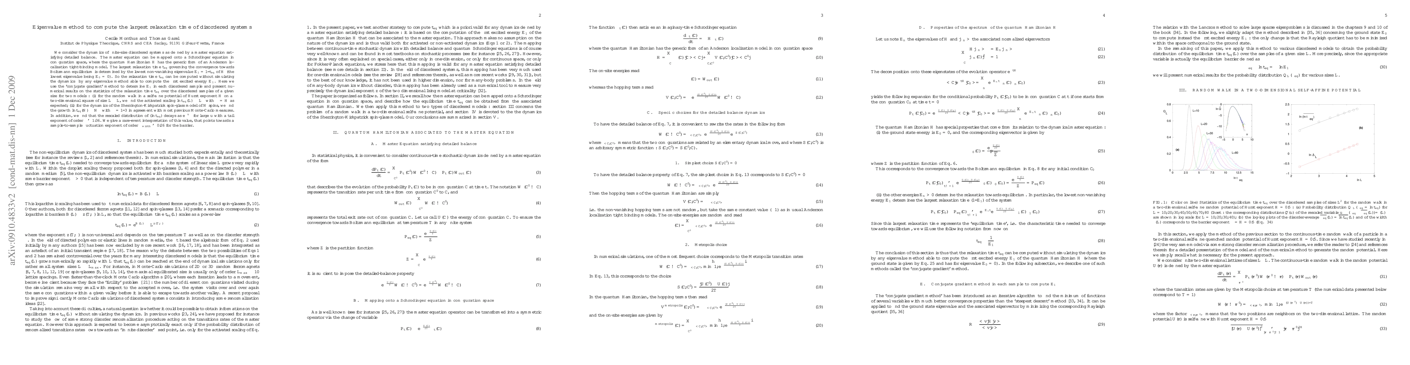This paper proposes an eigenvalue method to compute the largest relaxation time $t_{eq}$ in disordered systems without simulating the dynamics, using the lowest non-vanishing eigenvalue of the Hamiltonian. Numerical results show activated scaling for random walks in self-affine potentials and growth scaling for the Sherrington-Kirkpatrick spin-glass model, with a tail exponent $\eta \simeq 1.36$ indicating sample-to-sample fluctuations.