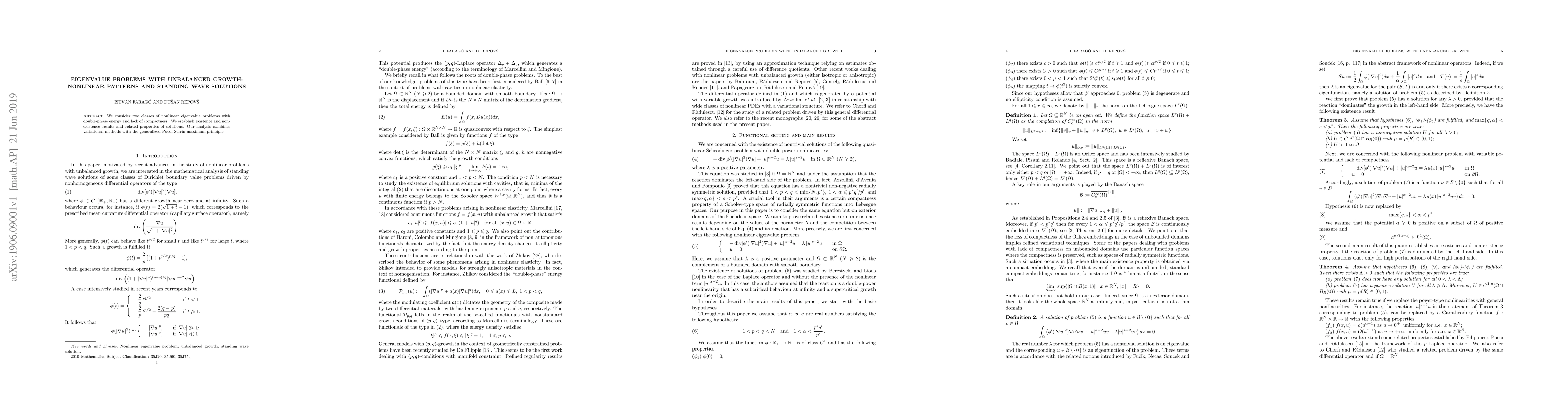 Researchers studied nonlinear eigenvalue problems with unbalanced growth, establishing existence and non-existence results for standing wave solutions using variational methods and the generalized Pucci-Serrin maximum principle.