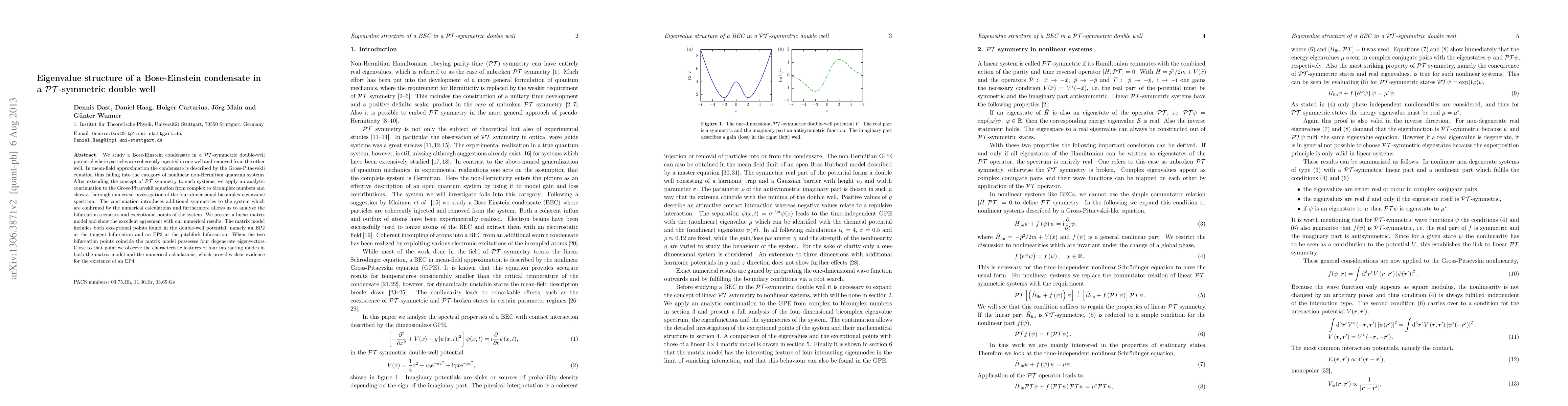 This paper explores the eigenvalue structure of a Bose-Einstein condensate in a PT-symmetric double-well potential using the Gross-Pitaevskii equation. It investigates the bicomplex eigenvalue spectrum, identifies exceptional points, and demonstrates the existence of an EP4 through a linear matrix model and numerical simulations.