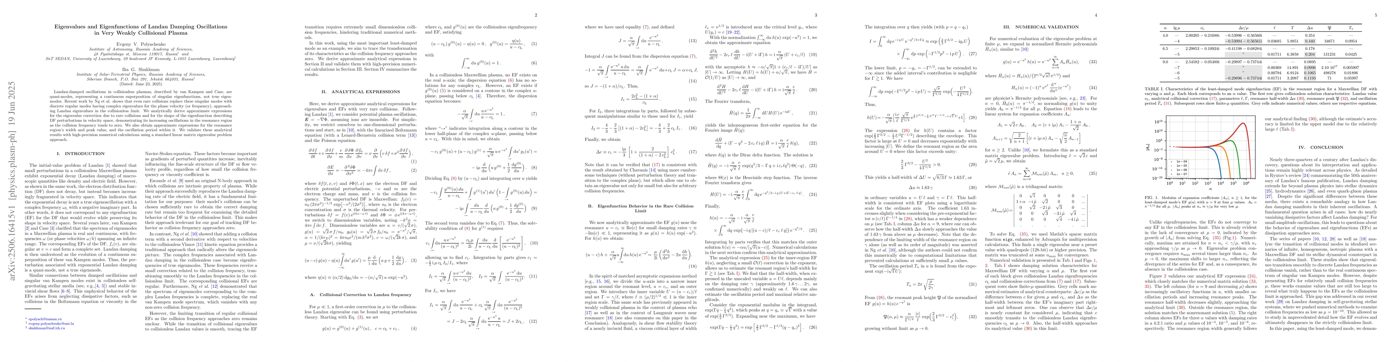 Landau-damped oscillations in collisionless plasmas, described by van Kampen and Case, are quasi-modes, representing a continuous superposition of singular eigenfunctions, not true eigenmodes. Recent work by Ng et al. shows that even rare collisions replace these singular modes with discrete regular modes having complex eigenvalues for the phase velocity (or frequency), approaching Landau eigenvalues in the collisionless limit. We analytically derive approximate expressions for the eigenvalue correction due to rare collisions and for the shape of the eigenfunction describing DF perturbations in velocity space, demonstrating its increasing oscillations in the resonance region as the collision frequency tends to zero. We also obtain approximate expressions for the resonance region's width and peak value, and the oscillation period within it. We validate these analytical results with high-precision numerical calculations using a standard linear matrix eigenvalue problem approach.