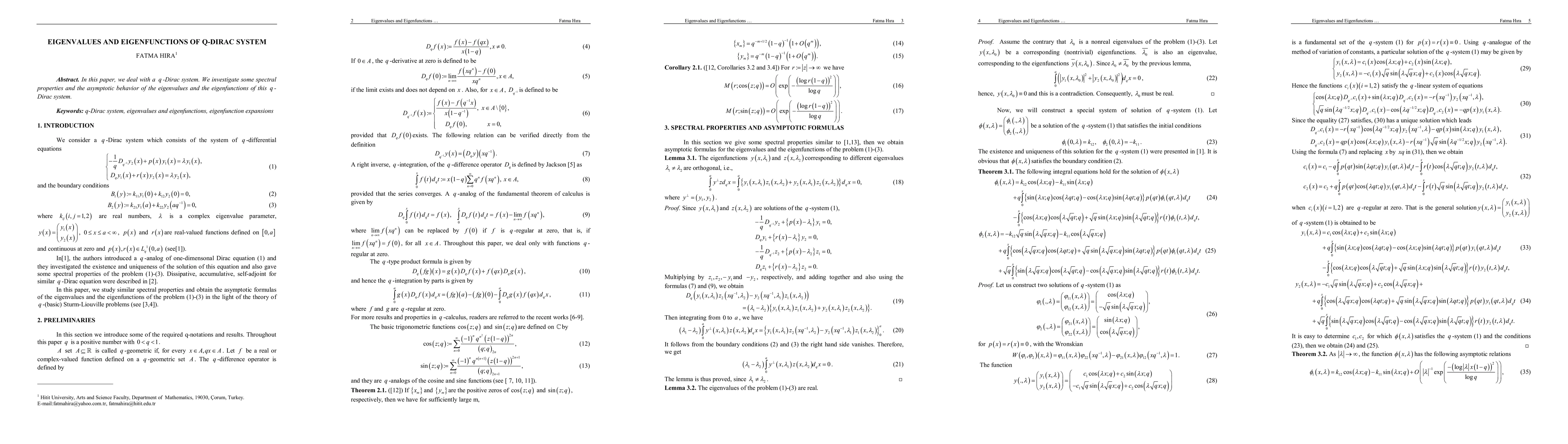 The research investigates spectral properties and asymptotic behavior of eigenvalues and eigenfunctions for a q-Dirac system using q-difference equations and q-Sturm-Liouville problems.
