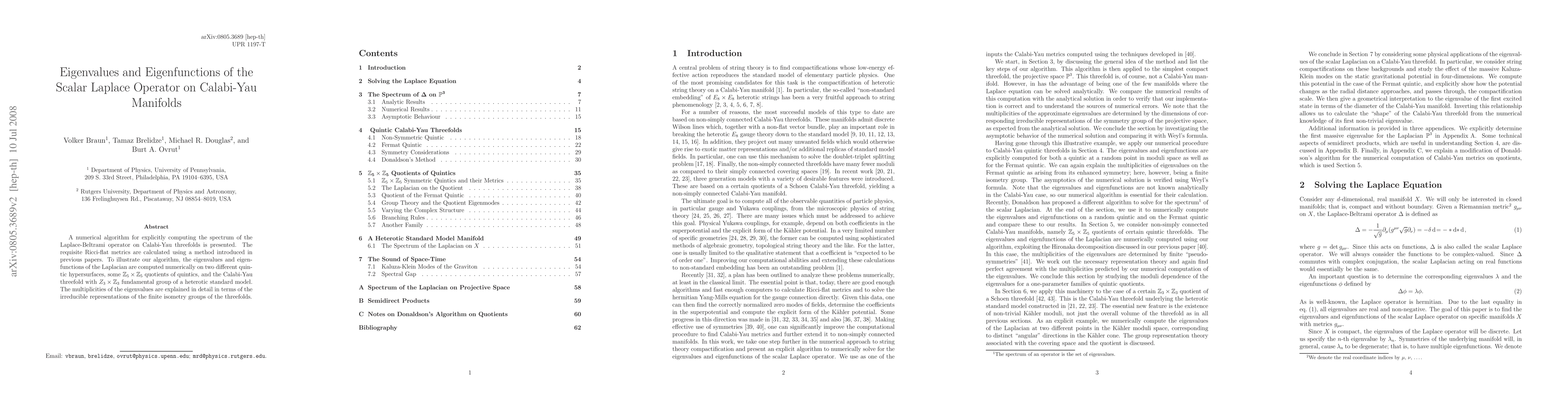 A numerical algorithm for explicitly computing the spectrum of the Laplace-Beltrami operator on Calabi-Yau threefolds is presented. The requisite Ricci-flat metrics are calculated using a method introduced in previous papers. To illustrate our algorithm, the eigenvalues and eigenfunctions of the Laplacian are computed numerically on two different quintic hypersurfaces, some Z_5 x Z_5 quotients of quintics, and the Calabi-Yau threefold with Z_3 x Z_3 fundamental group of the heterotic standard model. The multiplicities of the eigenvalues are explained in detail in terms of the irreducible representations of the finite isometry groups of the threefolds.